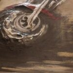Technika własna + farby akrylowe oraz cienkopis na panelu malarskim.