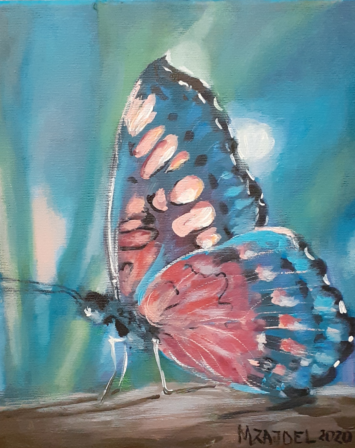 Obraz namalowany w 2020r, farbami akrylowymi na płótnie. Wymiary: 30 cm x 25 cm.