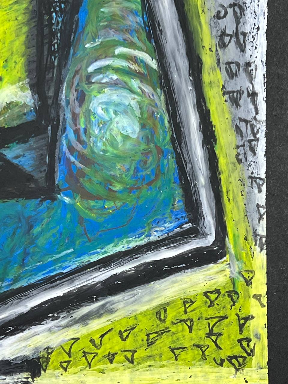 „Myśli proroka” to podróż w głąb starożytnej wiedzy i świętych kodów cywilizacji Majów. Obraz przedstawia głowę posągu, stylizowaną w duchu artefaktów tej wielkiej kultury, ale interpretowaną przez pryzmat współczesnego oka. Żywe kontrasty i warstwowe kolory symbolizują przeplatanie się czasu, w którym przeszłość spotyka się z teraźniejszością. Centralny obraz głowy posągu otoczony jest wirem wspomnień i legend, które wciąż żyją w zbiorowej świadomości.
