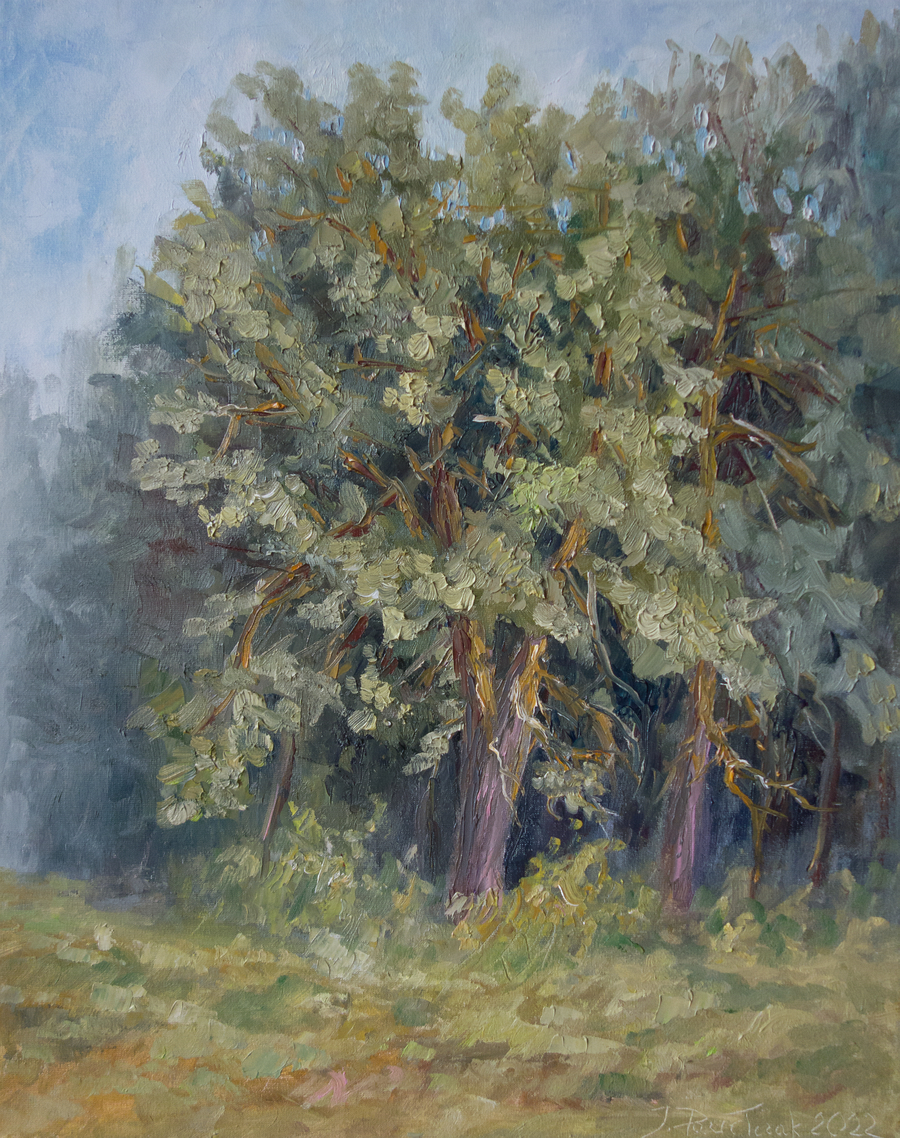 Obraz olejny na podobraziu płóciennym z widoczną fakturą farby