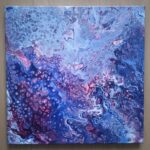 Obraz abstrakcyjny akrylowy na płótnie stworzony technika pouringu o rozmiarach 40×40, boki są kontynuacją obrazu