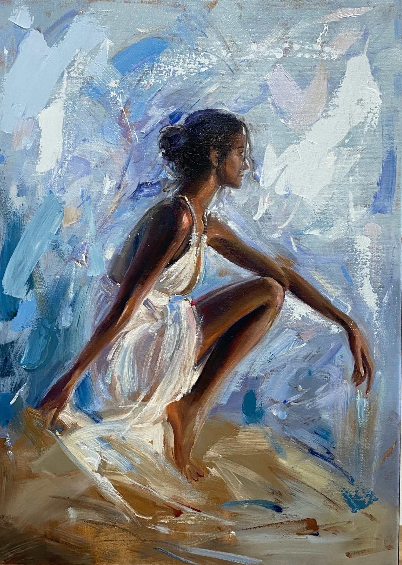 • Obraz malowany farbami olejnymi na płótnie bawełnianym o wymiarze 70×50cm, rok wykonania 2024.