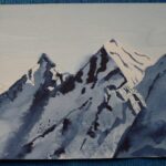 Ta praca wykonana akwarelami stanowi efekt pewnego eksperymentu: siedziałem po turecku na zboczu stoku narciarskiego trzymając blok akwarelowy na kolanach, w prawej ręce pędzel, pudełko z farbami w jej zasięgu, w lewej ręce lornetka skierowana na góry. Siedziałem sztywno, poruszały się tylko ręce i gałki oczne – efekt zaskakujący.