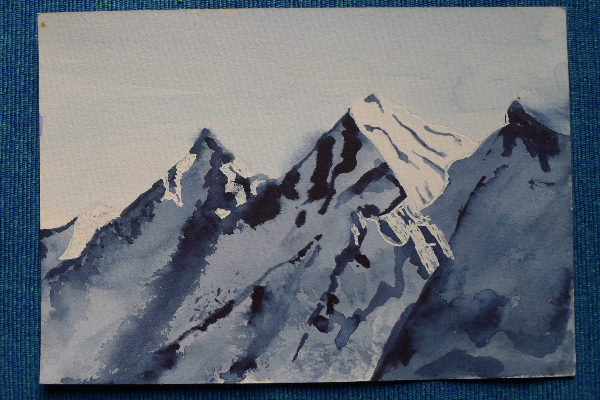 Ta praca wykonana akwarelami stanowi efekt pewnego eksperymentu: siedziałem po turecku na zboczu stoku narciarskiego trzymając blok akwarelowy na kolanach, w prawej ręce pędzel, pudełko z farbami w jej zasięgu, w lewej ręce lornetka skierowana na góry. Siedziałem sztywno, poruszały się tylko ręce i gałki oczne – efekt zaskakujący.