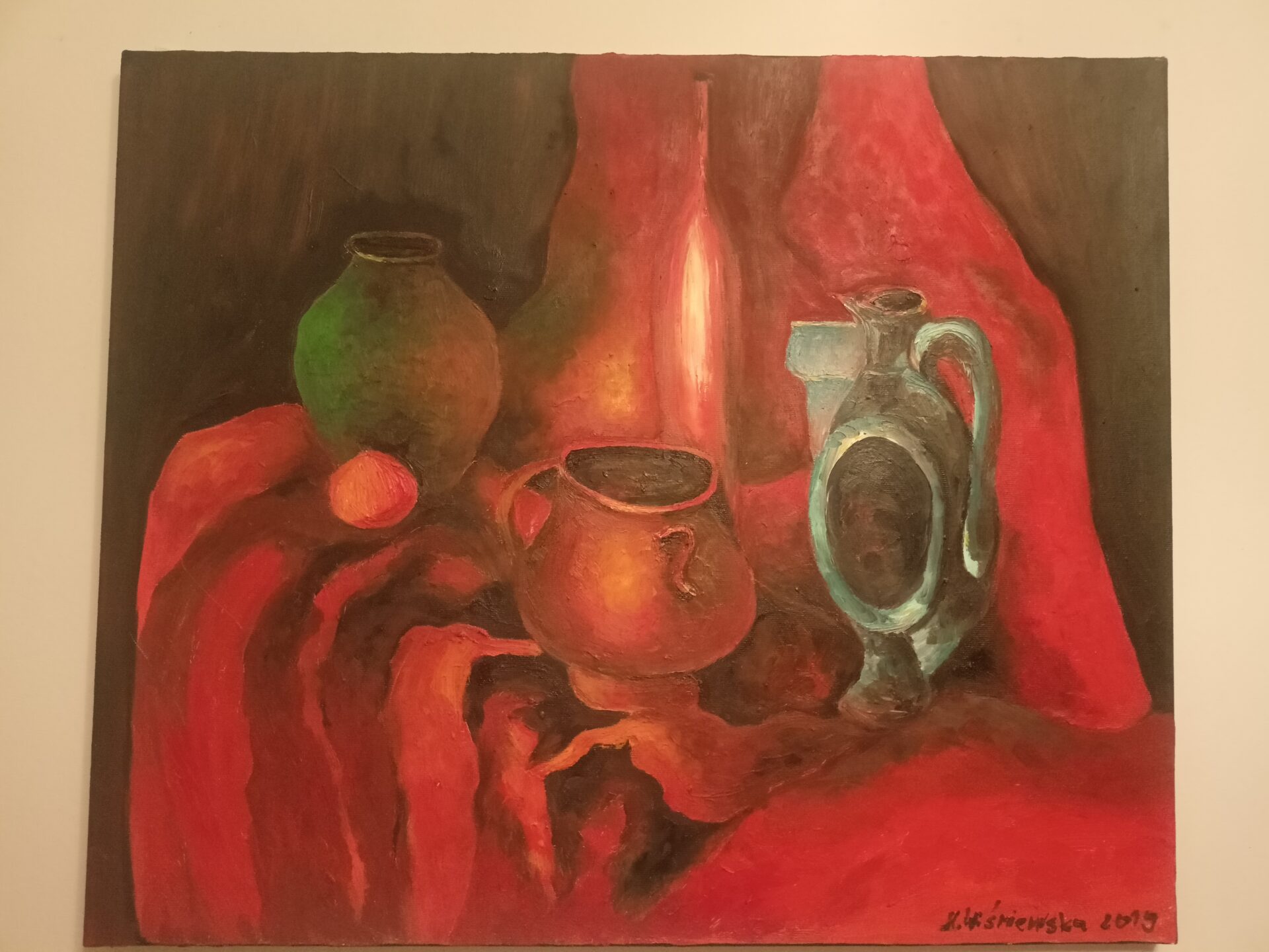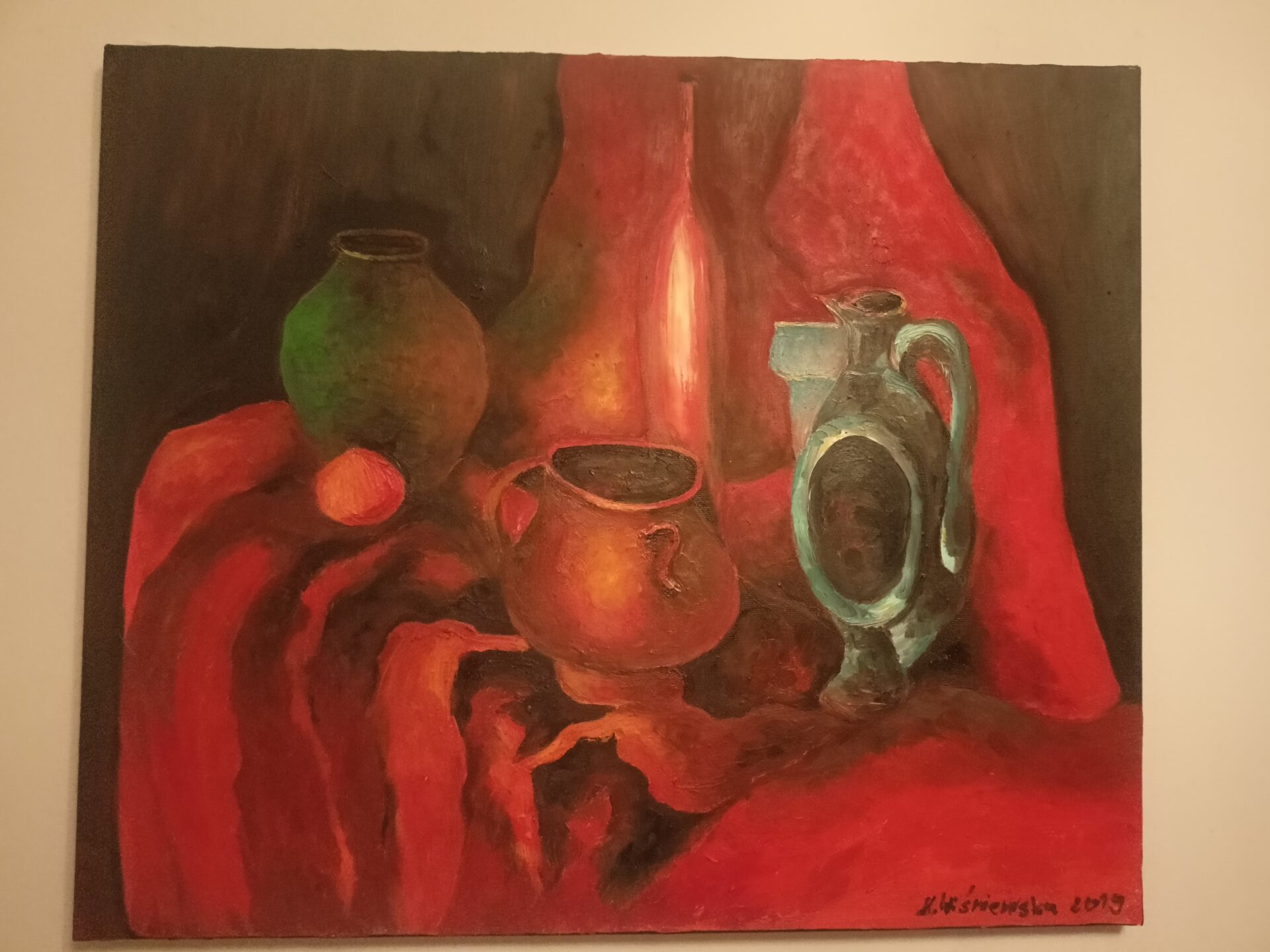 Obraz olejny malowany na płótnie z wyobraźni o rozmiarach 50cm*60cm, boki są zamalowane