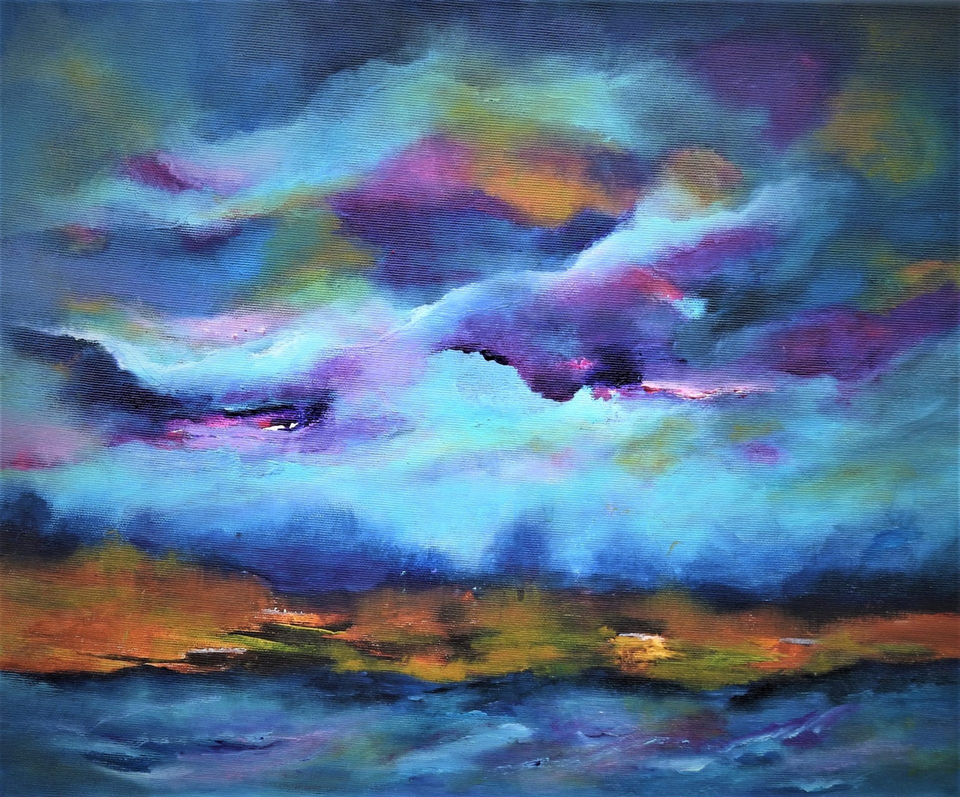 Pejzaż morski. Abstrakcyjny obraz namalowany na włoskim płótnie bawełnianym Caravaggio 50 x 40 x 3, krosno grubości 3 cm, tzw 3D. techniką własną – olej, akryl. Praca ma zamalowane boki, zbędna więc rama. Zabezpieczony werniksem damarowym. Sygnowany z tyłu obrazu / tytuł, autor, rok powstania/. Miły prezent dla ceniących podróże, pejzaże morskie. Może stanowić dekorację gabinetu, salonu czy sypialni.