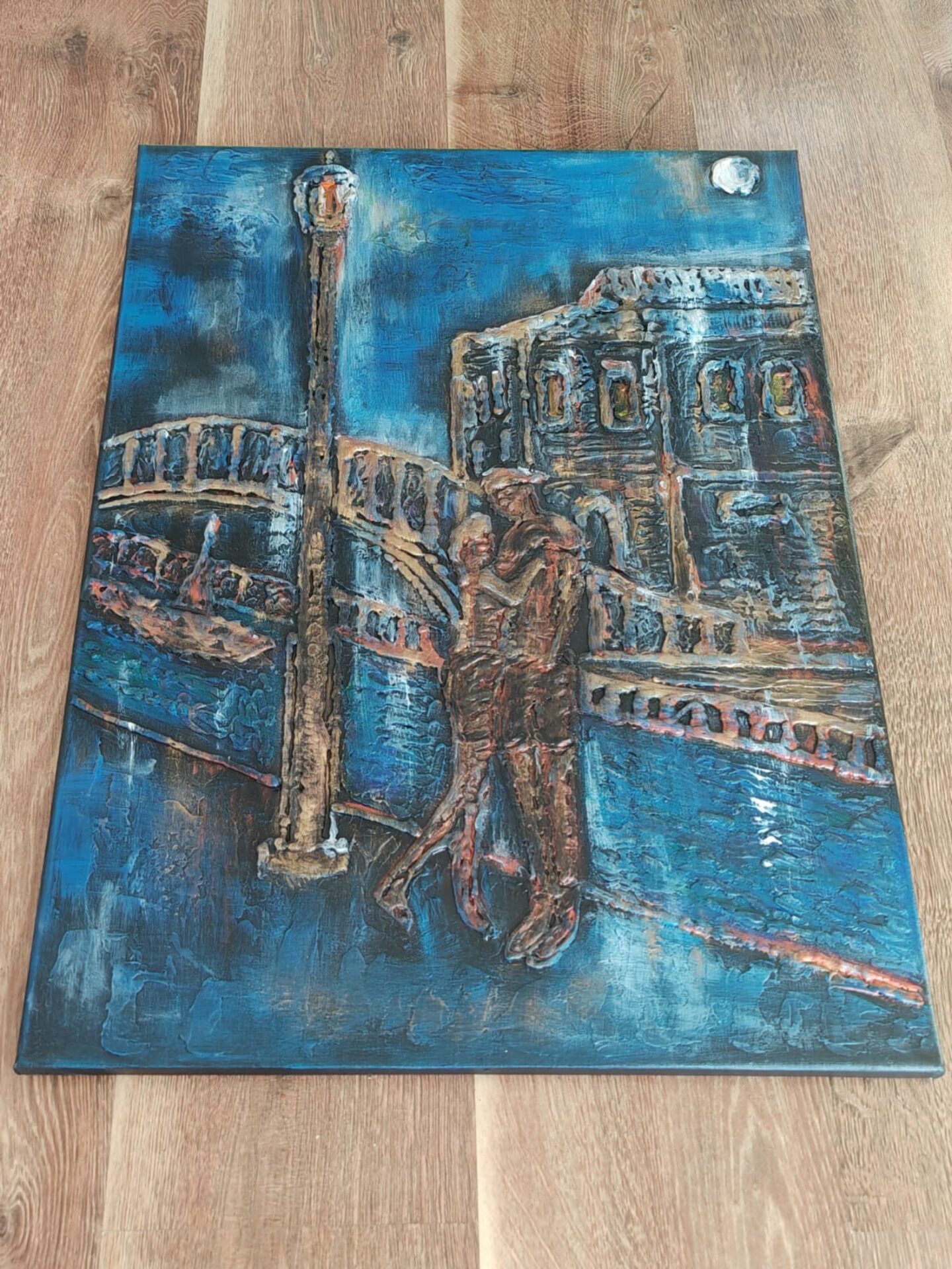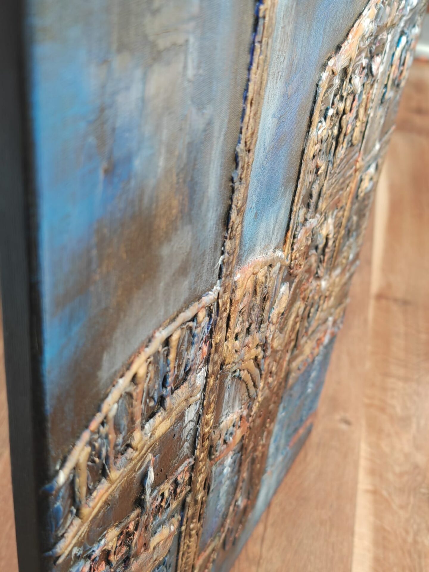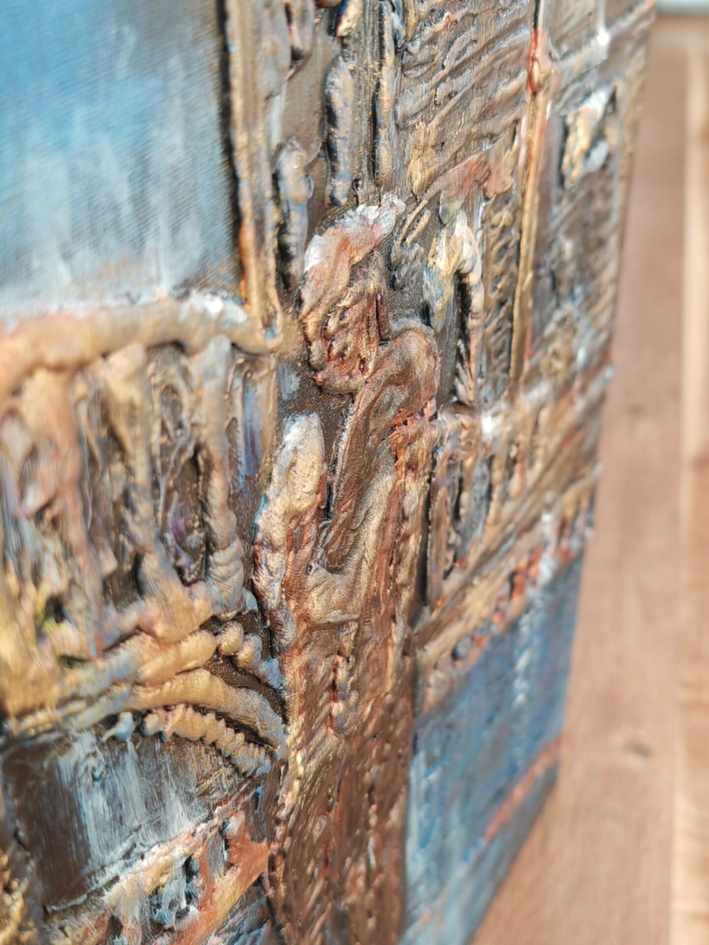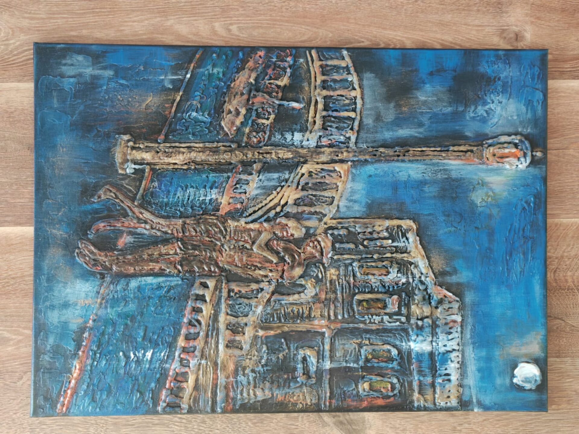 Witam, mam do sprzedania obraz strukturalny na podobraziu malarskim, obraz namalowany farbami akrylowymi, zabezpieczony podwójną warstwą ochronną lakieru.