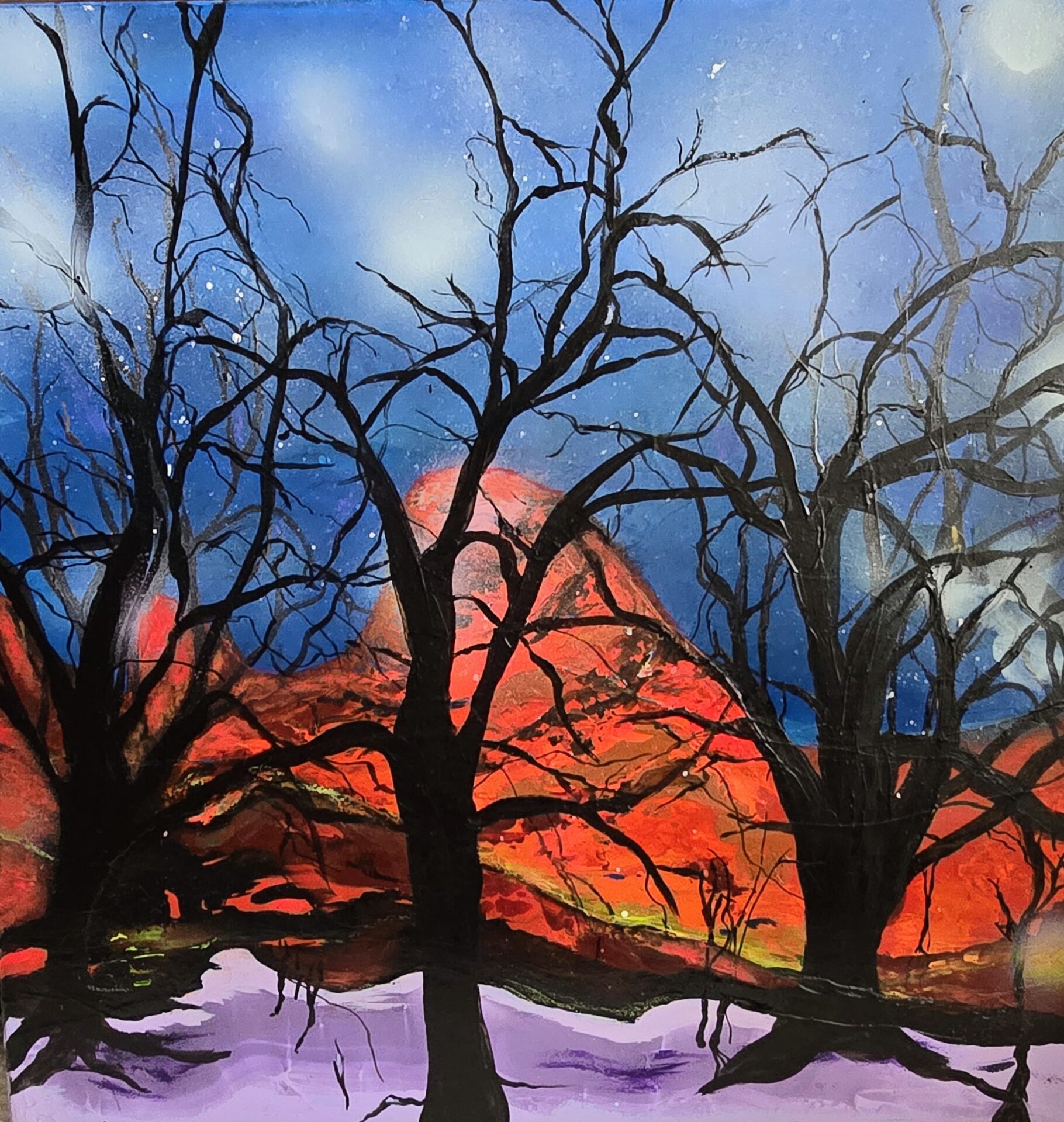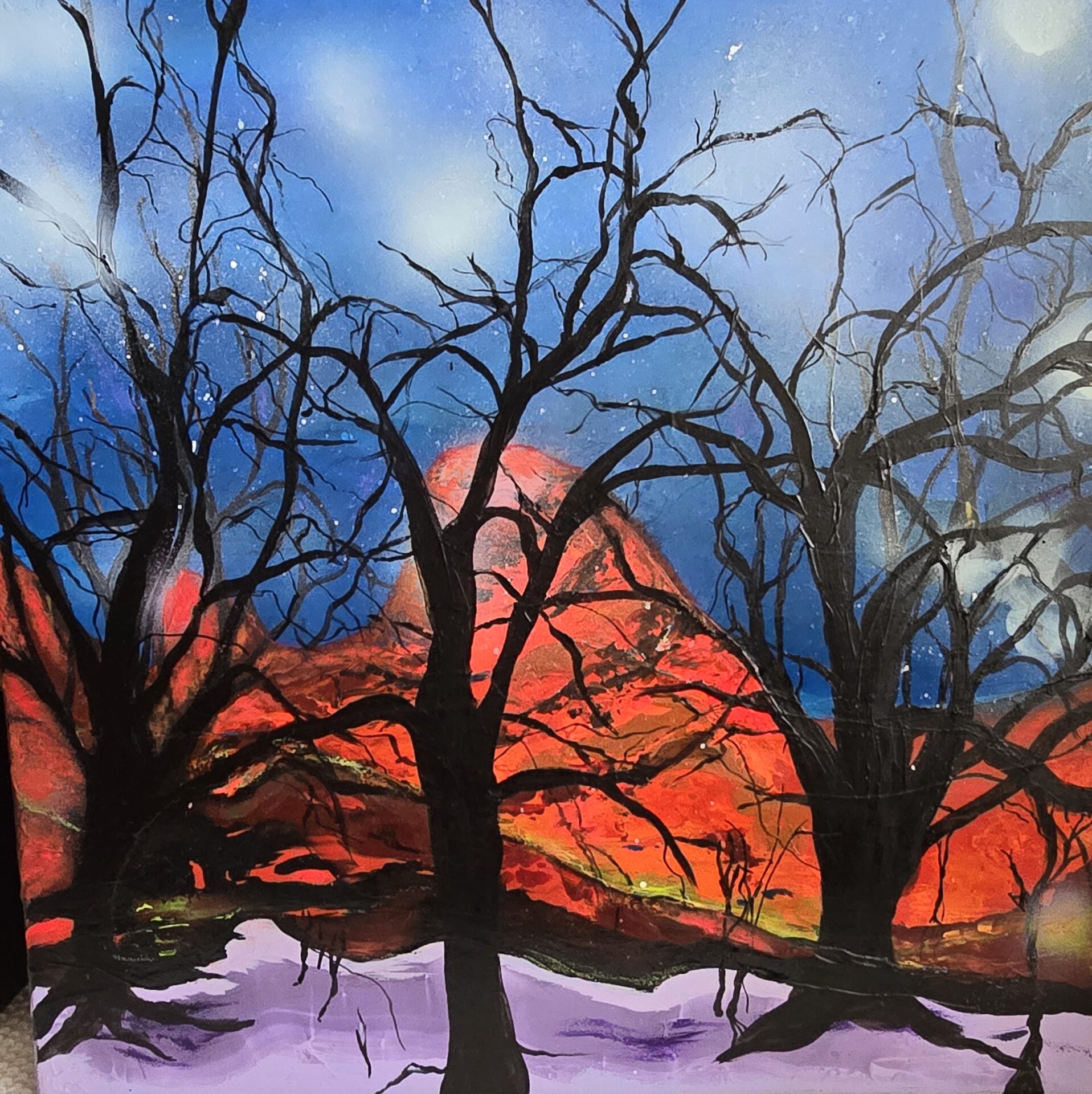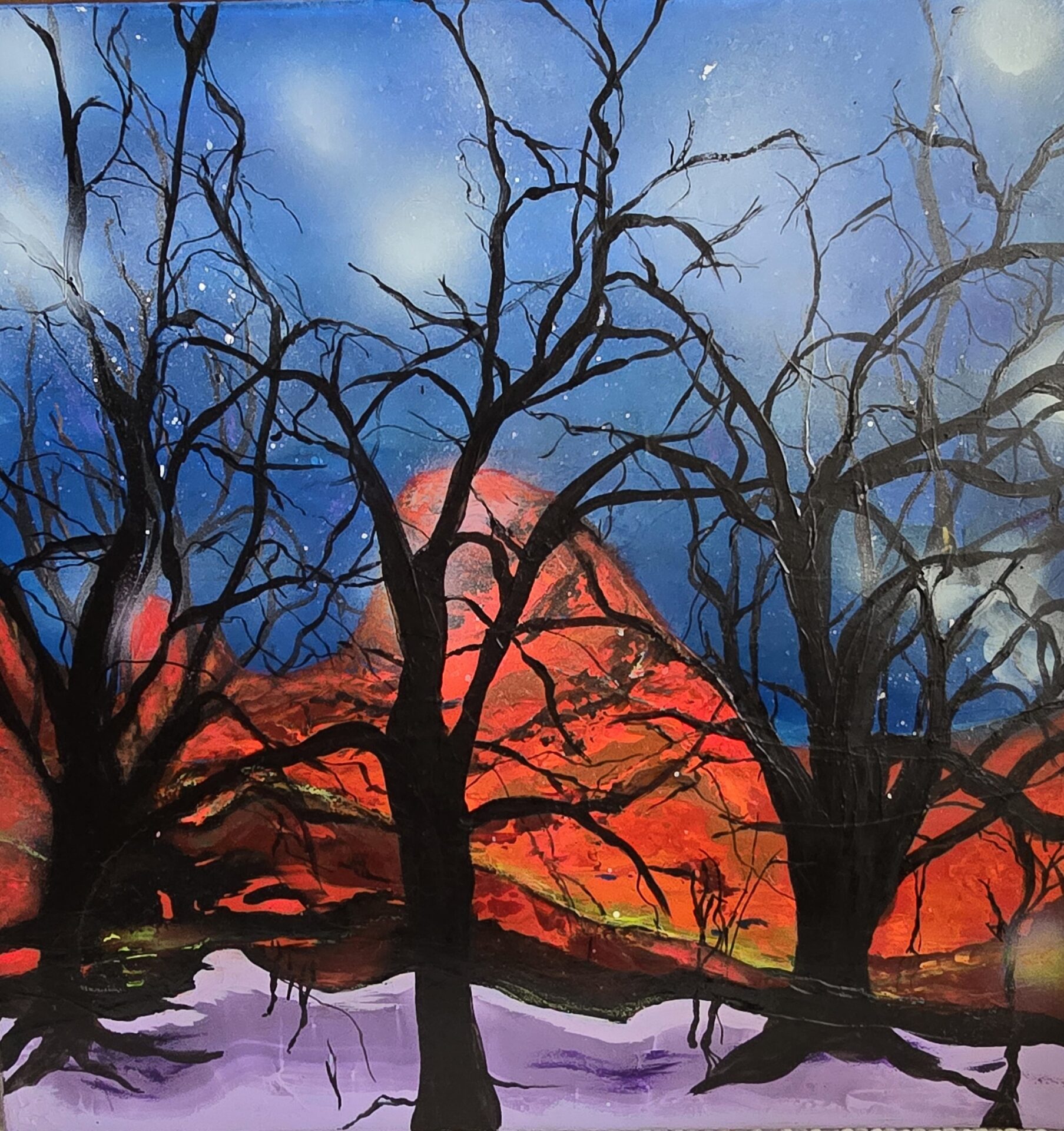 Obraz akrylowy ręcznie malowany na płótnie naciągniętym na bjetram drewniany.