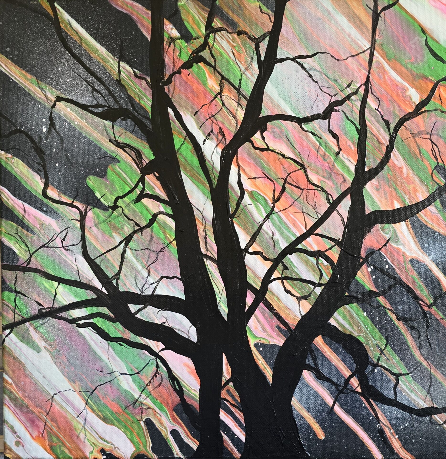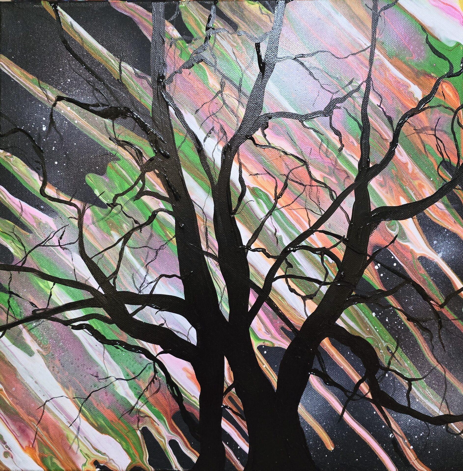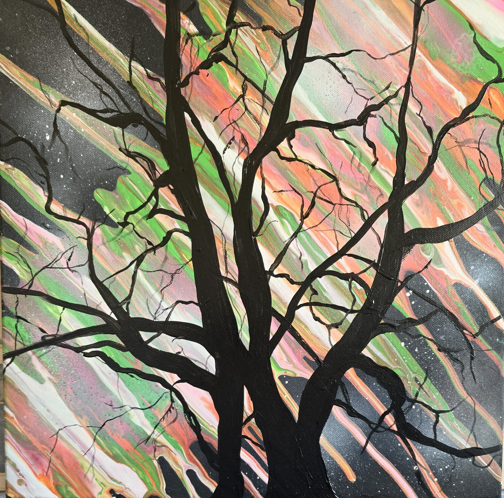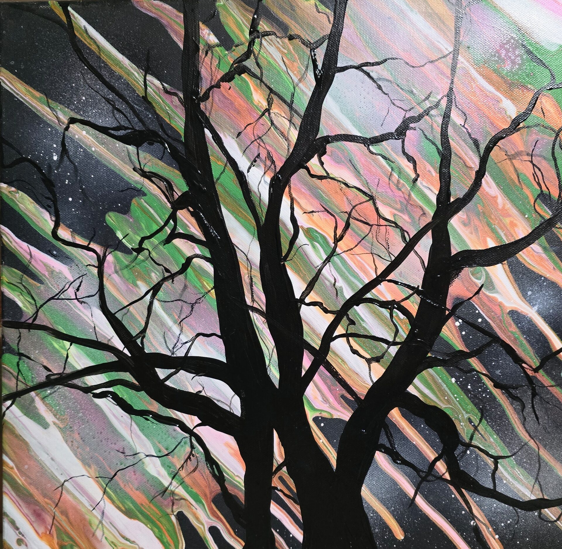 Obraz akrylowy ręcznie malowany na płótnie naciągniętym na bjetram drewniany.