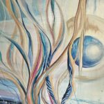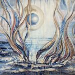Obraz namalowany w technice akrylowej, werniksowany.Utrzymany w kolorystyce niebiesko-beżowej.