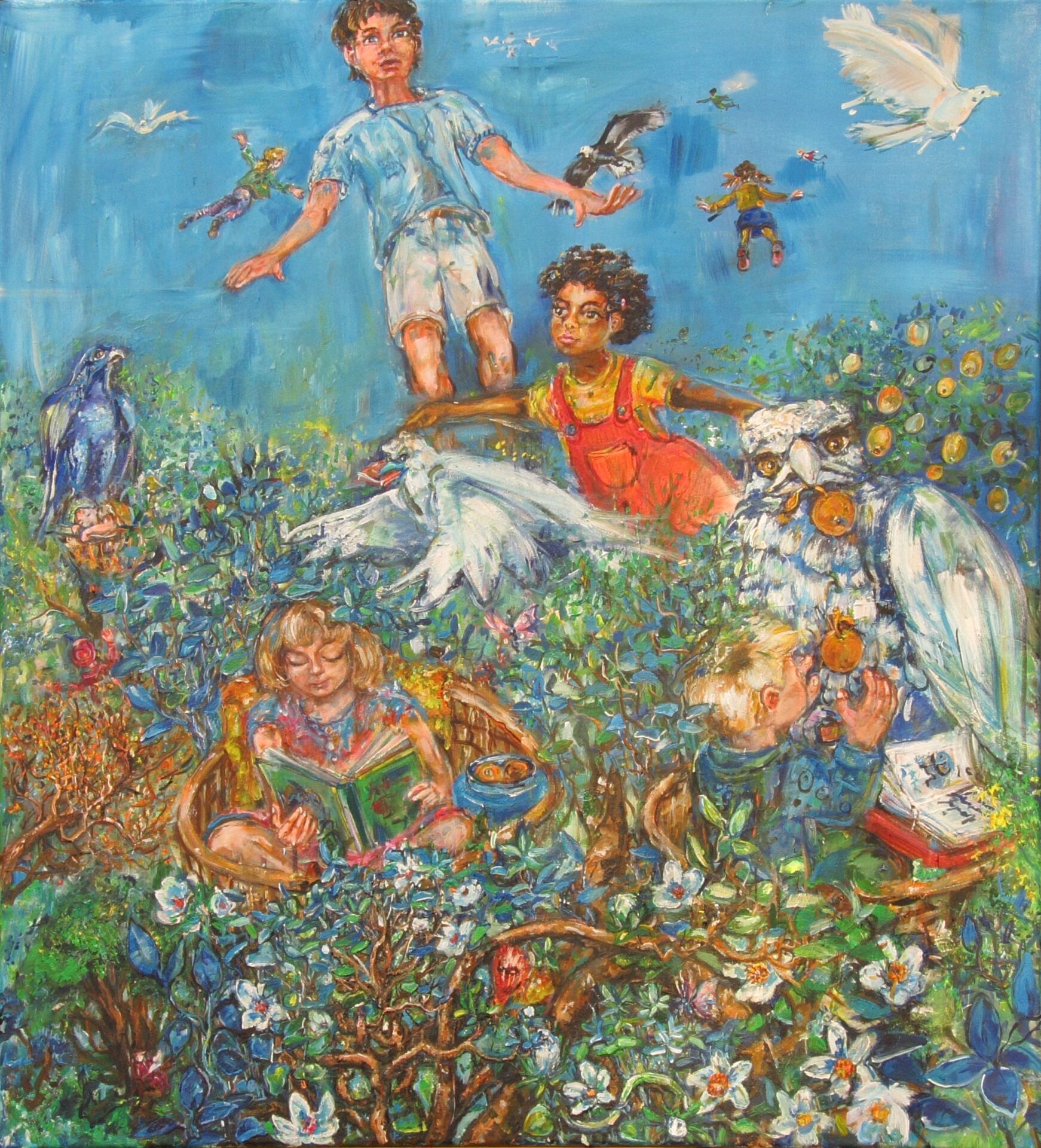 Dzieci mieszkają w gniazdach w koronach drzew. Przez jakiś czas, by się uczyć. Stają się, jednocześnie częścią natury i kultury. Karmione miejscowymi owocami nabierają mądrosci życiowej. Poznają tajniki lasu i gor. Książki dostarczane przez czarodziejskie ptaki przynoszą im wiedzę i opowieści świata ludzi. Dzieci latają są wolne . I piękne w tym