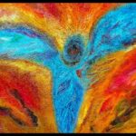 Obraz namalowany niezwykle szczegółową i pracochłonną techniką olejną na płótnie, przedstawia anielską istotę wyłaniającą się z płomieni i popiołów niczym mityczny ptak Feniks, uznawany za symbol słońca i wiecznego odradzania się życia.