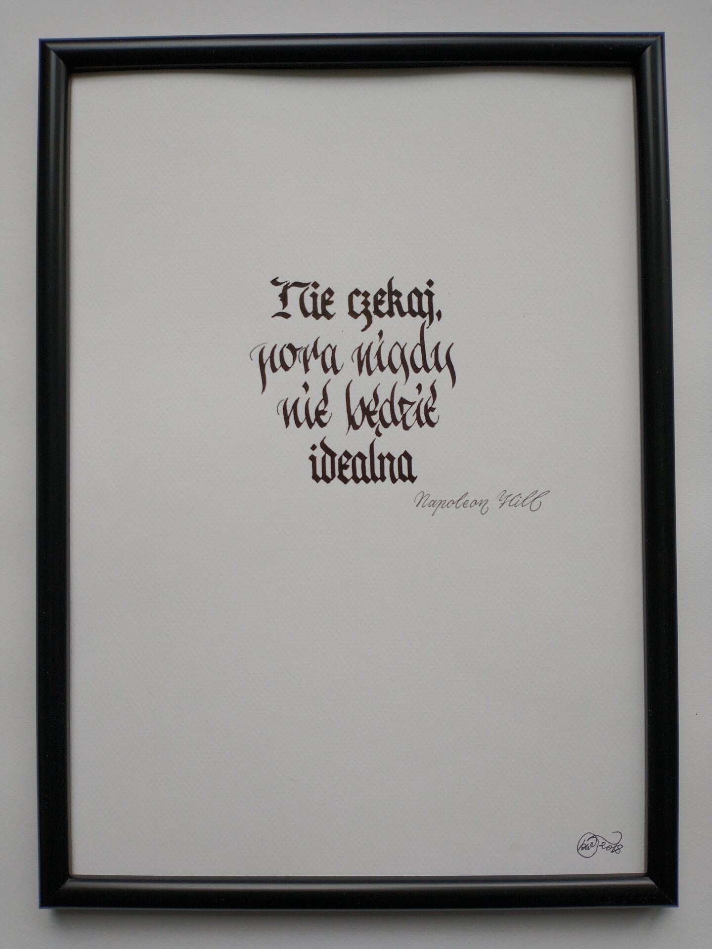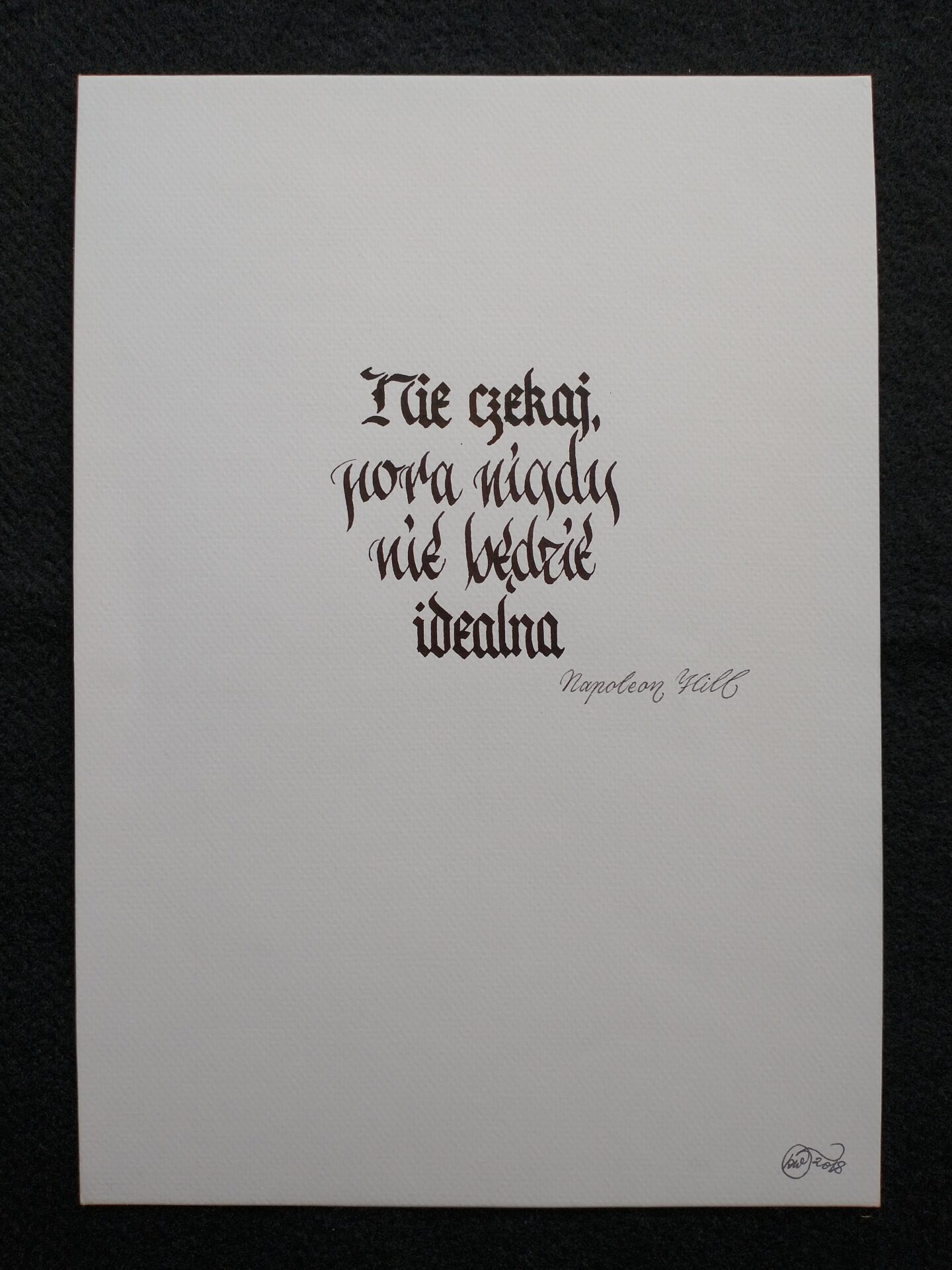 Kaligrafia – ekolina na papierze akwarelowym, format A4 w orientacji pionowej.