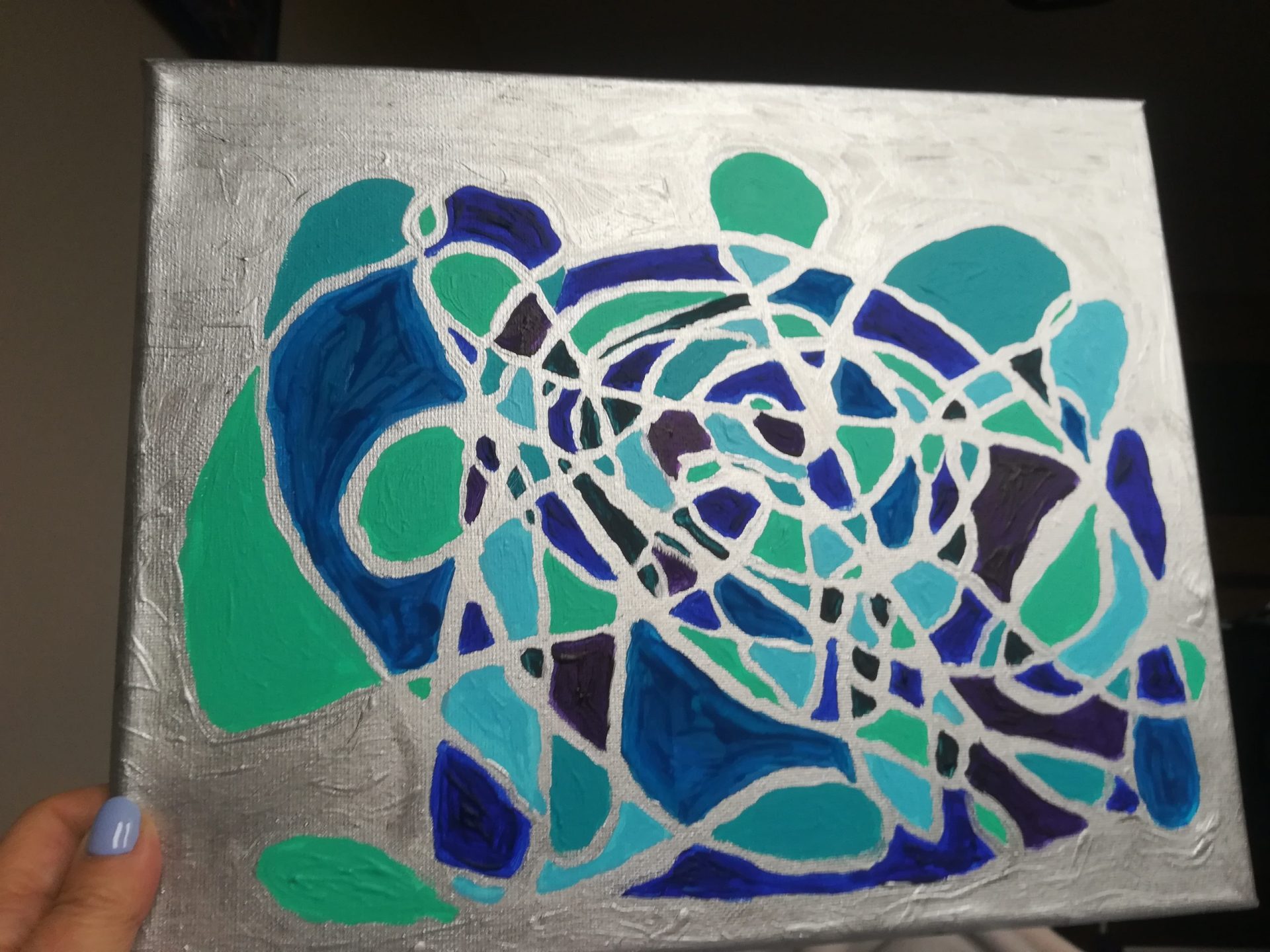 obraz ręcznie malowany na płótnie , farby akrylowe oraz metaliczna srebrna boki zamalowane