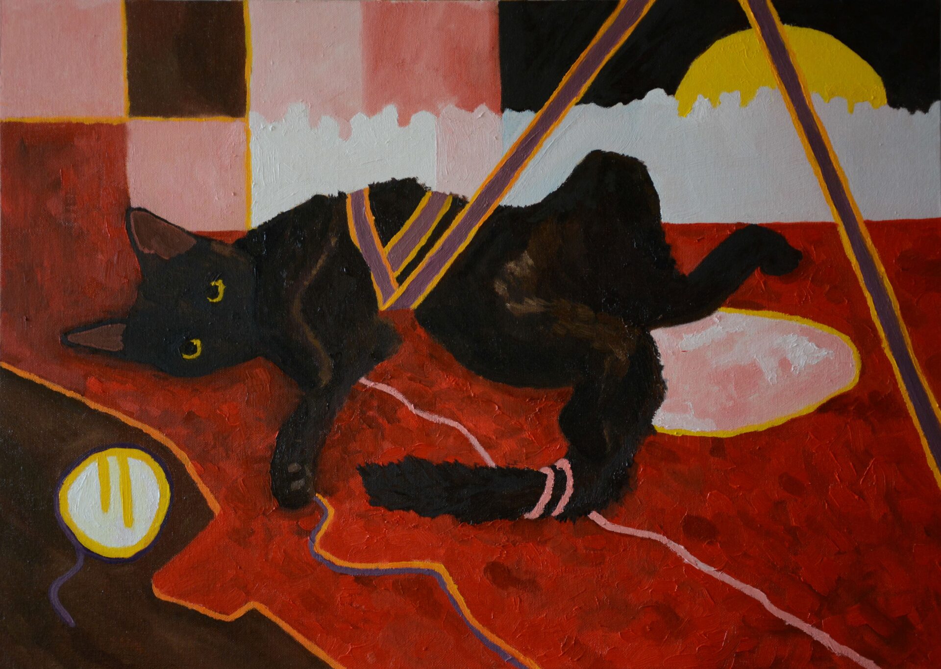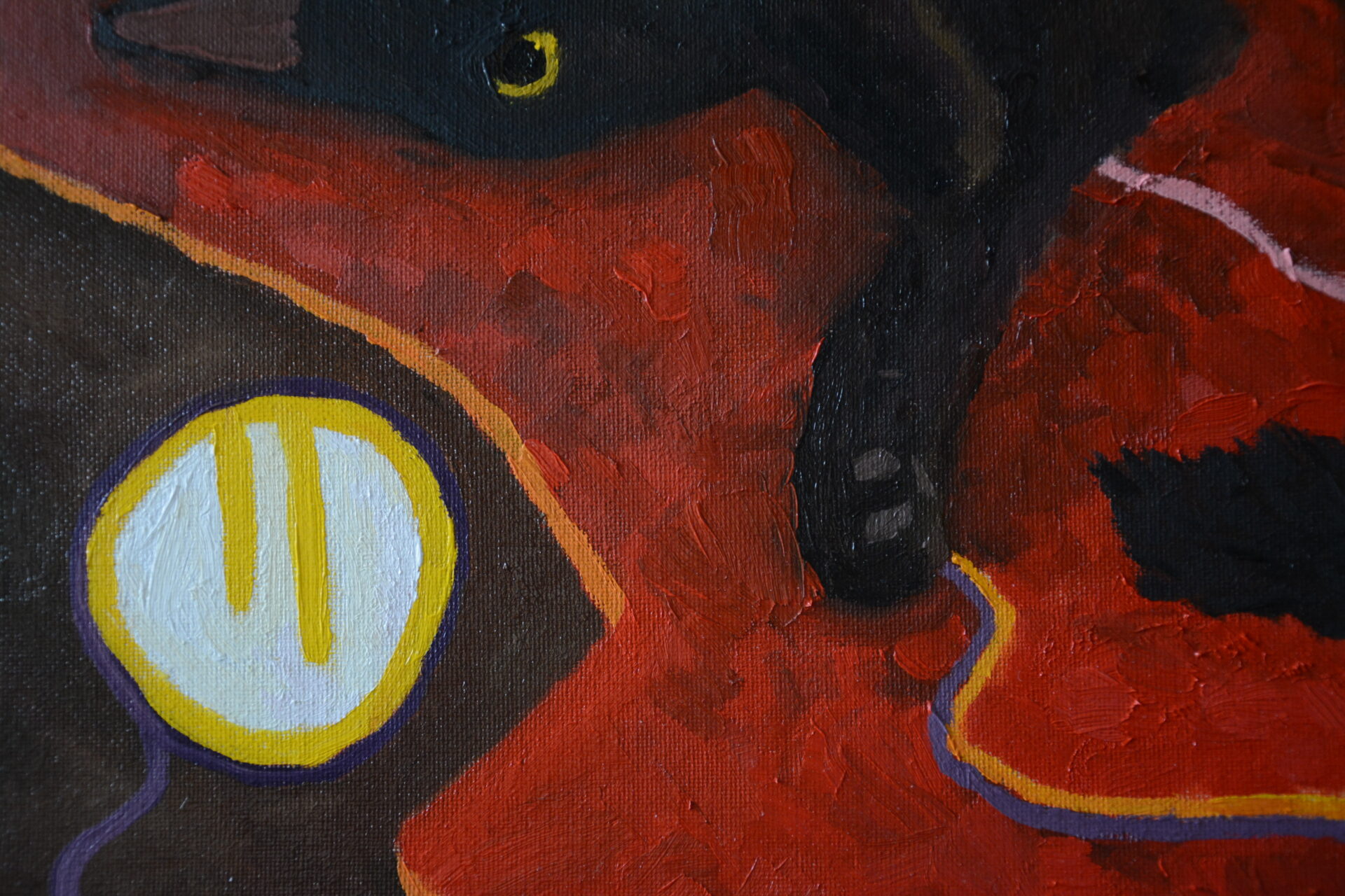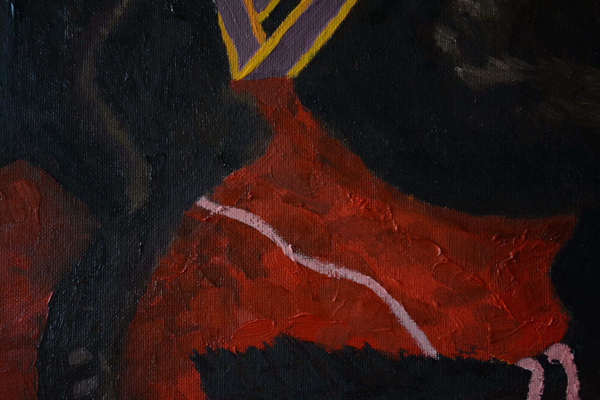 „Nieproszony gość” 50 cm x 70 cm, olej na płycie malarskiej.