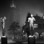 Gdy fotografowałem nocą te dwie rzeźby Igor Mitoraja ująłem je w kadrze tak, aby uzyskać sugestię, że rozmawiają ze sobą. Krakowski smog, który w zimie dusi miasto, na fotografii dał trzy osobne plany, rzeźby na pierwszym, Sukiennice – jeszcze ze szczegółami – na drugim i na trzecim kościół Mariacki przesłonięty zawiesiną mgły. Fotografia ma wymiary 30 × 26 cm ( 32 × 28 z passe-partout). Limit wydruków: 1/10.