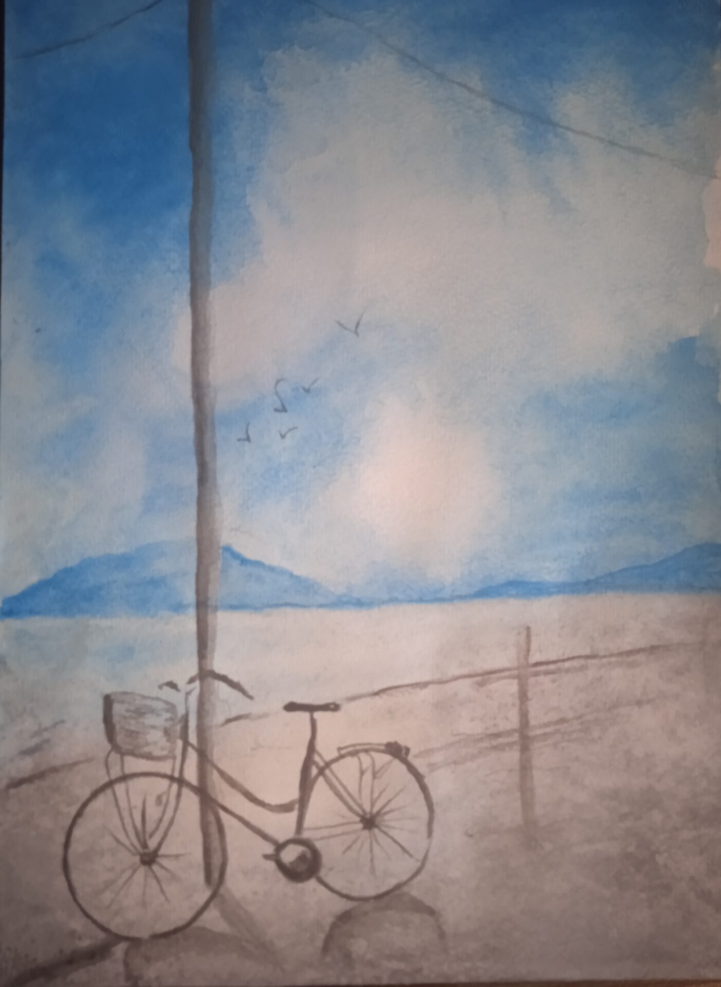 Obraz akwarelowy w brązowej ramce format A4 wykonany przeze mnie we wrześniu tego roku