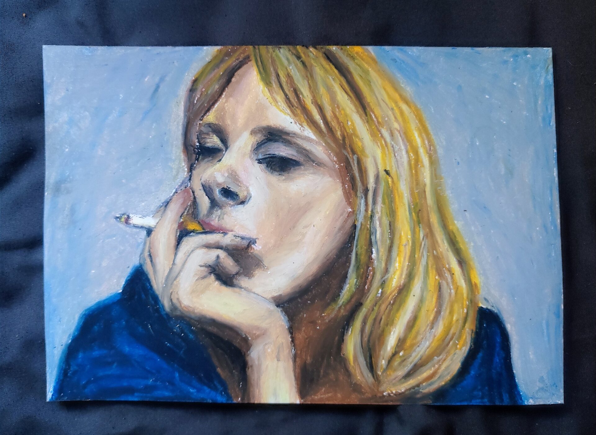 Dzieło tworzyłam w inspiracji wpływu jesiennego, smętnego nastroju i takich też uczuć. Jednocześnie starałam się ciekawie łączyć odcienie pasteli w pracy. Sądzę, że efekt jest interesujący. Całość zajęła mi ok 3h samej pracy.