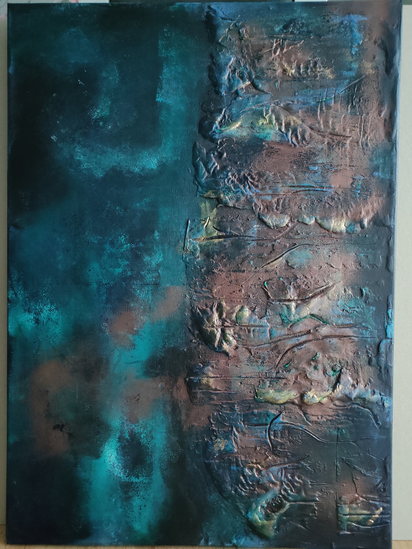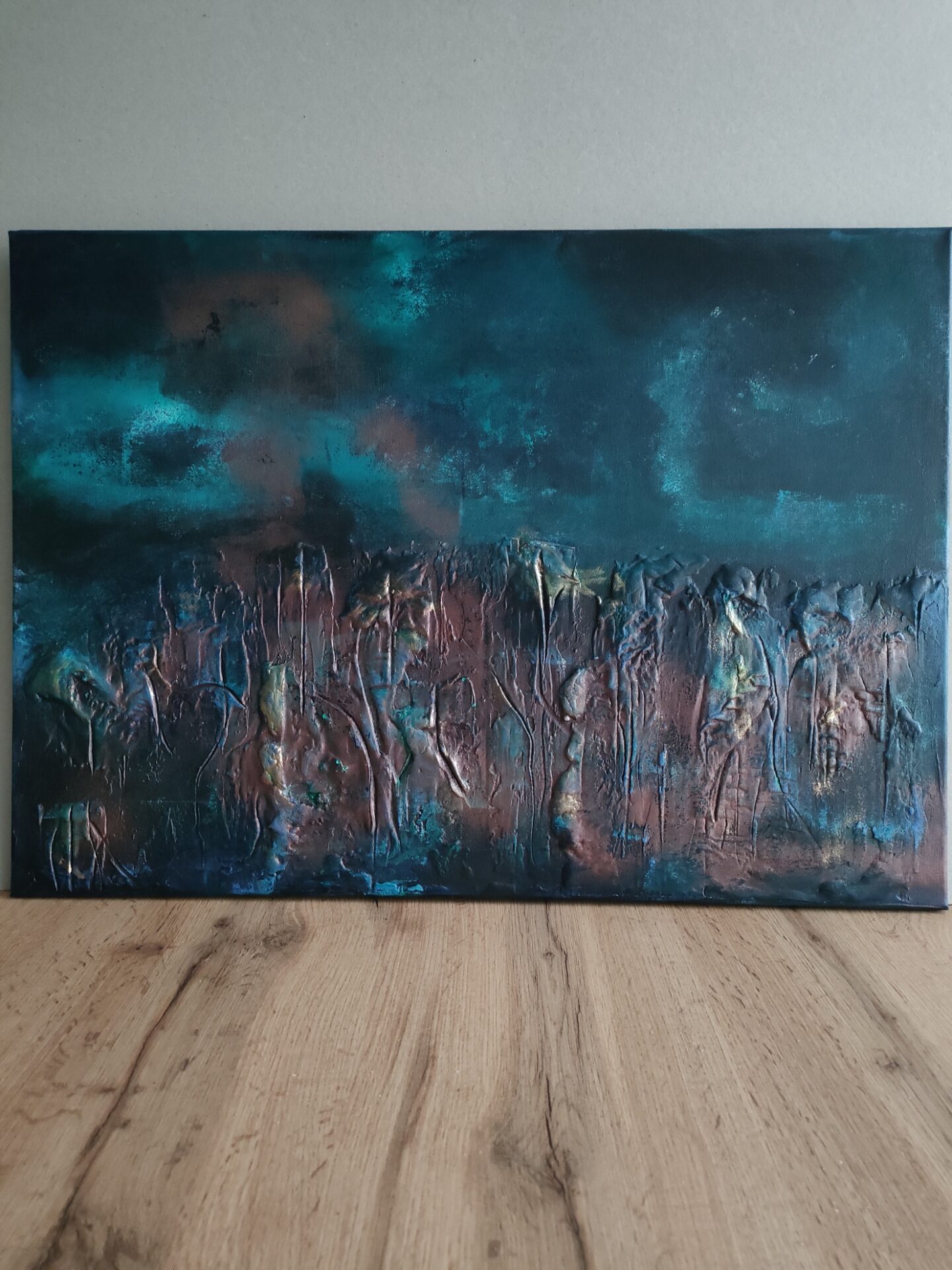 Witam, mam do sprzedania obraz namalowany farbami akrylowymi na podobraziu malarskim,zabezpieczony podwójną warstwą ochronną lakieru, boki obrazu pomalowane stanowią spójną całość, do obrazu dołączam zawieszkę,obraz strukturalny.