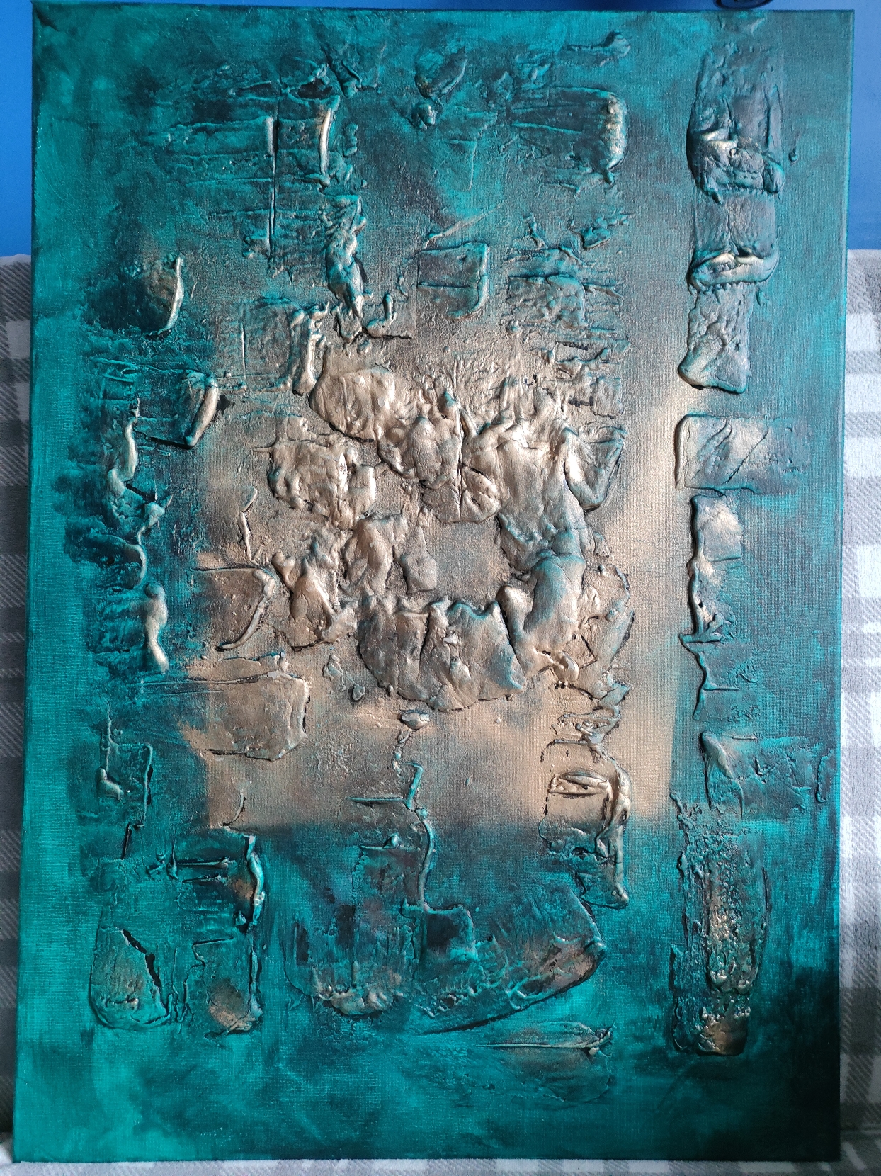 Witam, mam do sprzedania obraz namalowany farbami akrylowymi na podobraziu malarskim, zabezpieczony podwójną warstwą ochronną lakieru, boki obrazu pomalowane, stanowią spójną całość, do obrazu dołączam zawieszkę, obraz strukturalny.