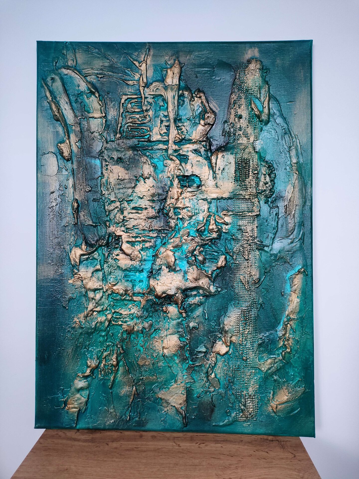 Witam, mam do sprzedania obraz strukturalny,na podobraziu malarskim, namalowany farbami akrylowymi, obraz zabezpieczony podwójną warstwą ochronną lakieru, boki obrazu tworzą całość, dołączam zawieszkę