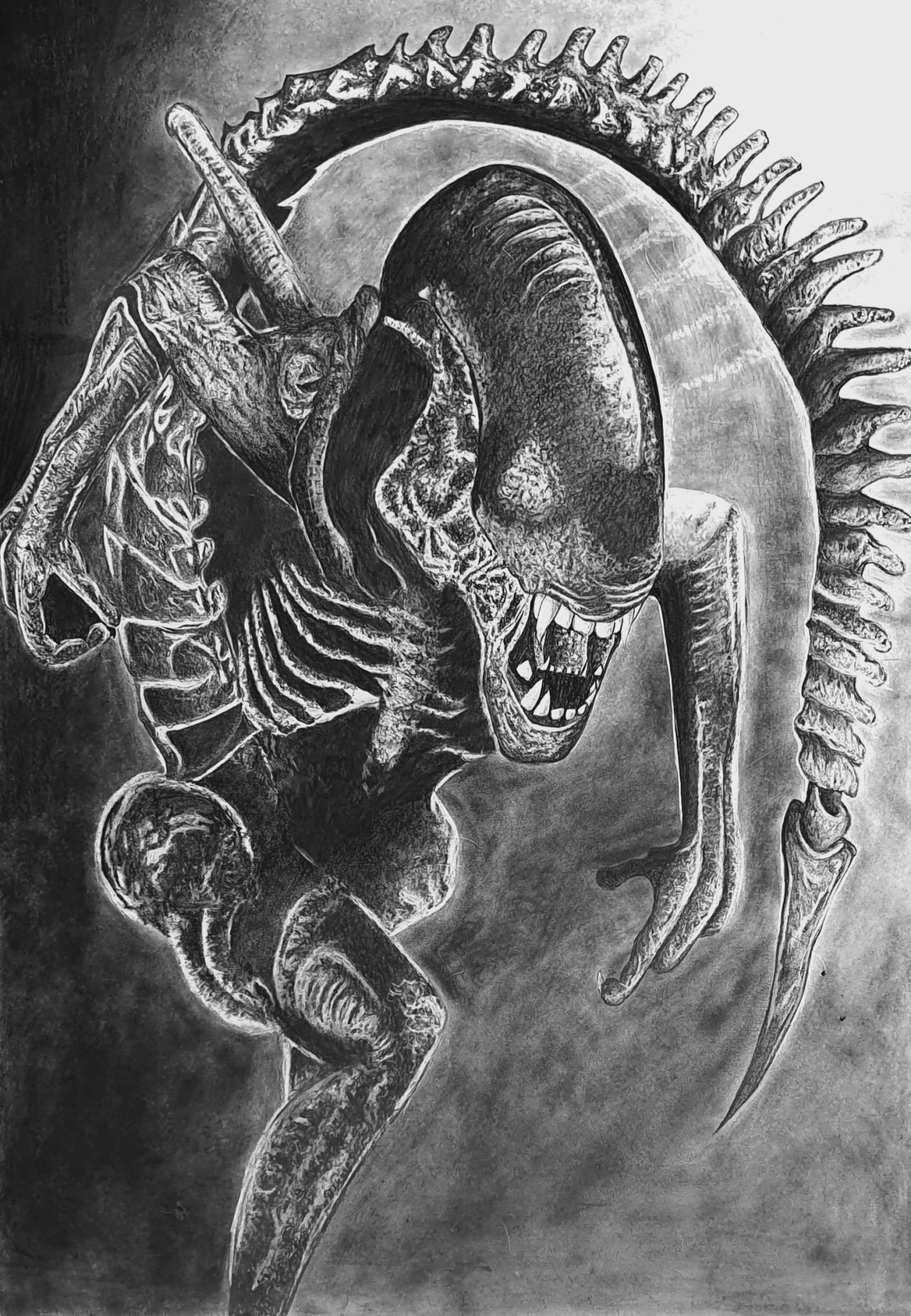 Obcy, postać z filmu Ridleya Scotta. Rysunek w formacie A1, wykonany ołówkiem