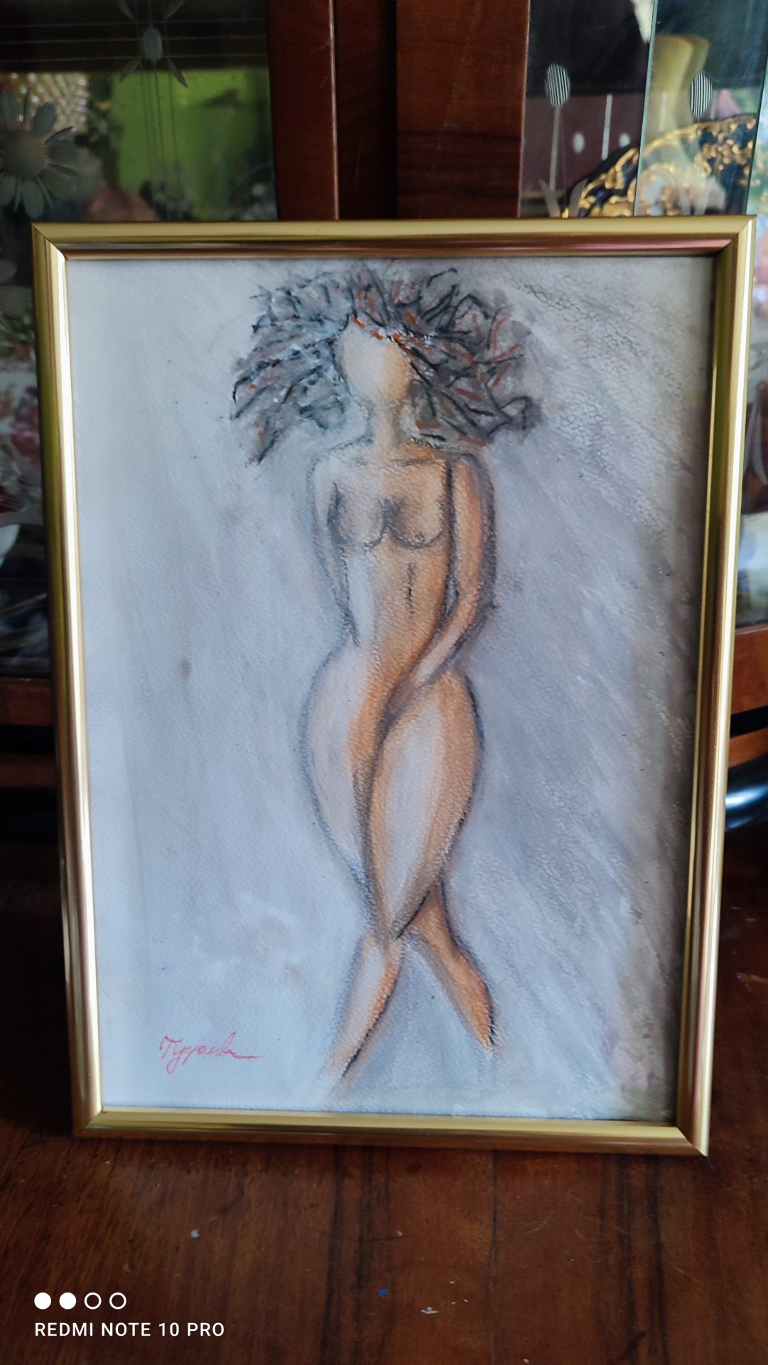 Obraz abstrakcja akt format A4 technika akryl na papierze brystol sygnowany ramka zaszklona w komplecie