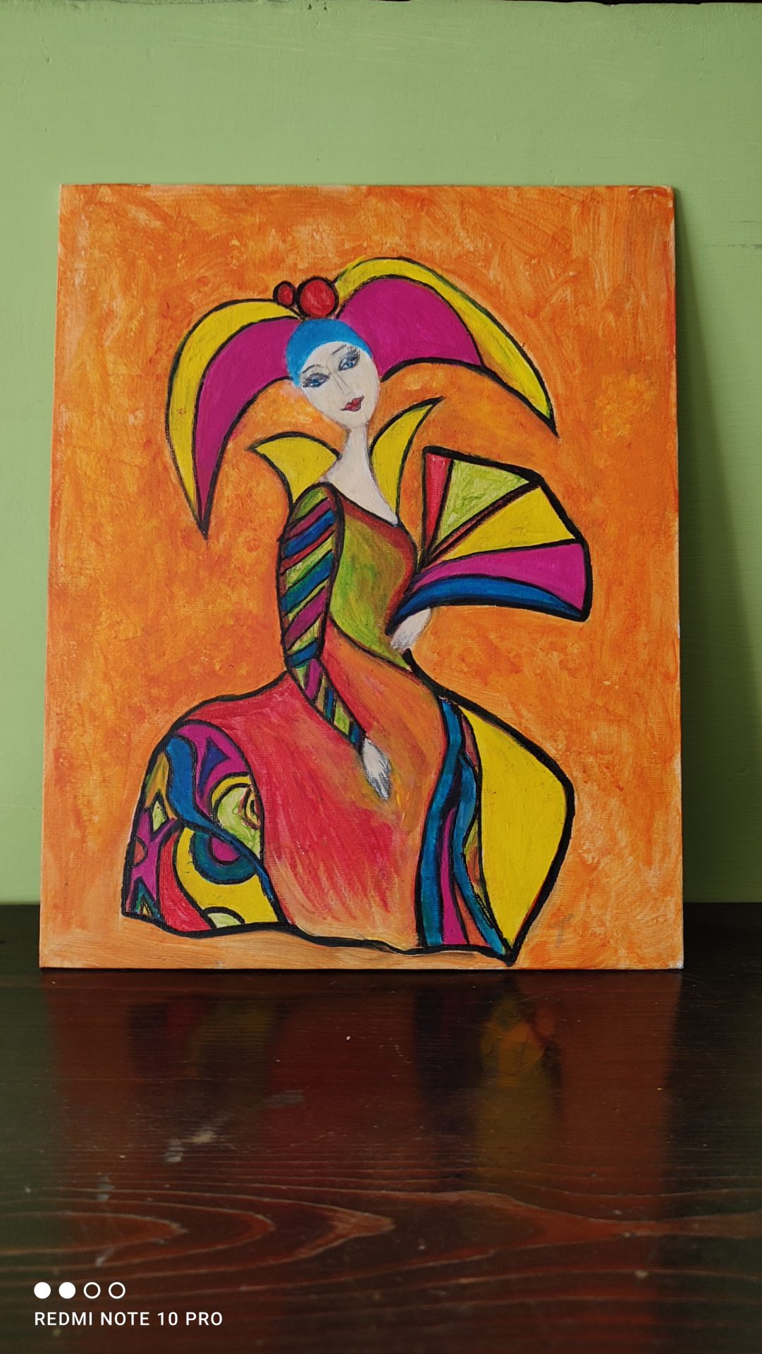 Obraz abstrakcja pt. Królowa błaznów płótno naklejone na tekturę, wymiar 25x30cm
