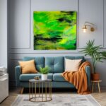 Przeważające barwy obrazu: zielony, żółty, czarny z odrobiną pomarańczowego. Użyto także farb fluorescencyjnych, dzięki czemu obraz ożywi wnętrze. Czarne boki podkreślają te kolory.