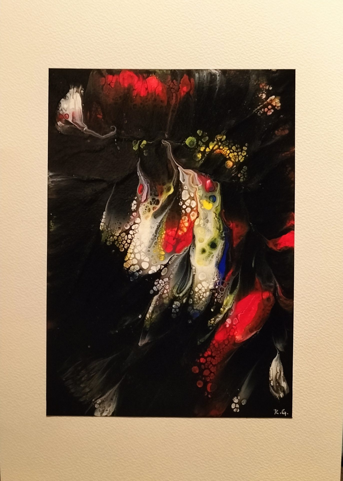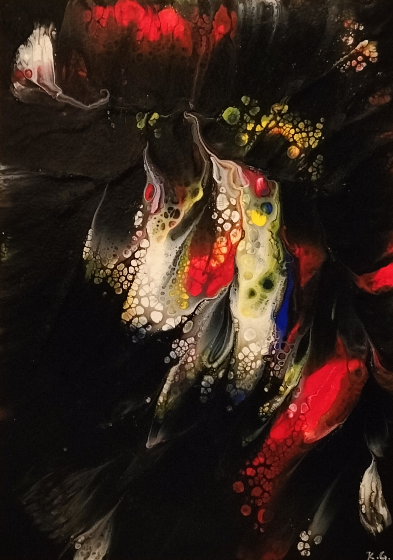 Obraz wykonany farbami akrylowymi na specjalnym papierze przeznaczonym do farb wodnych o gramaturze 300gsm.