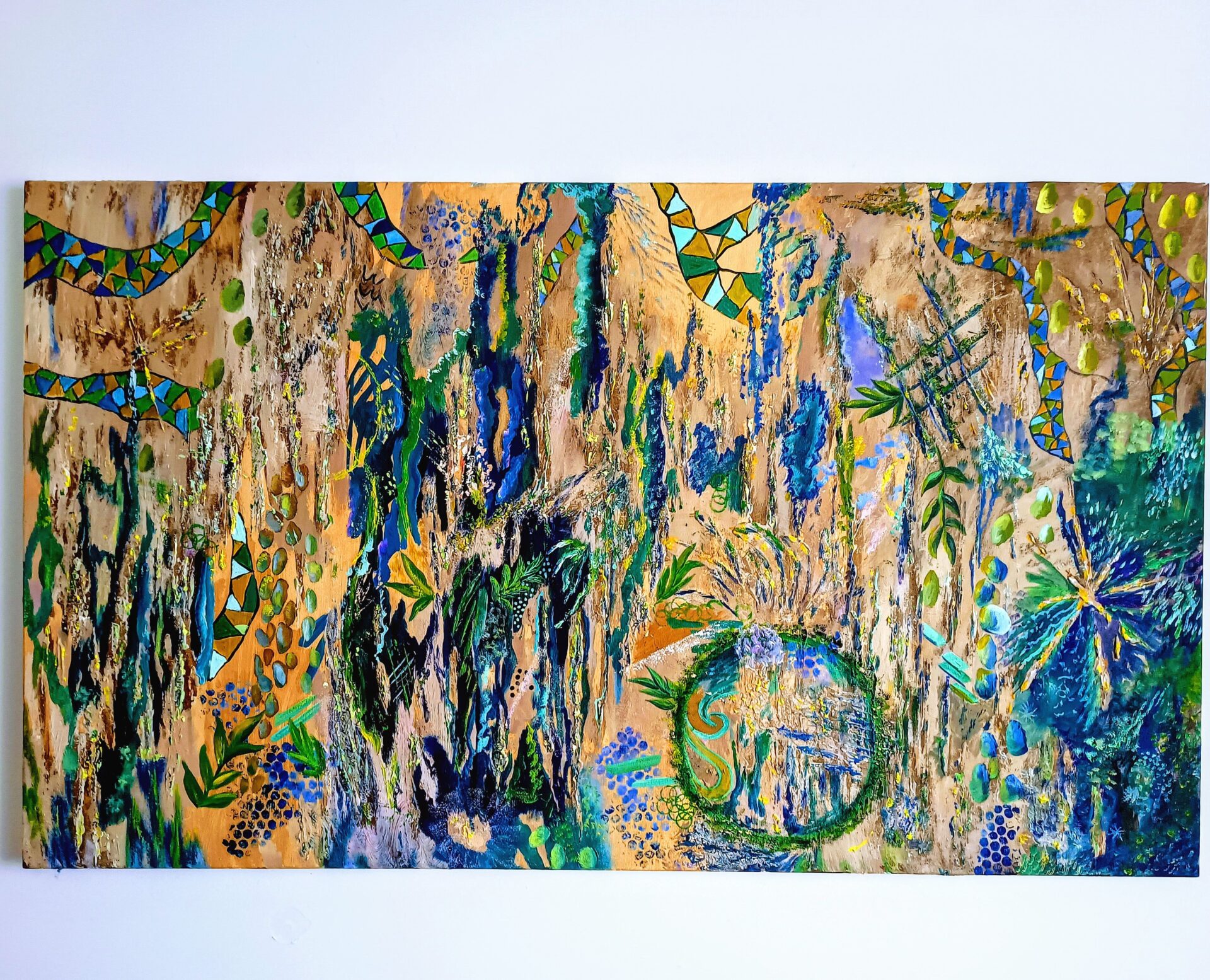Sprzedaję obraz abstrakcyjny, olejny 120×70.Gruba faktura na płótnie,signowany Technika mieszana.