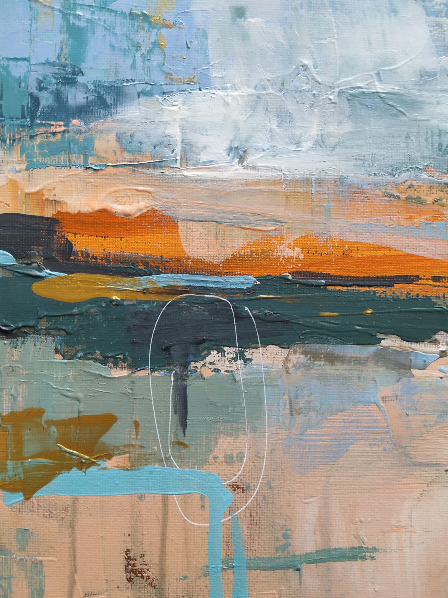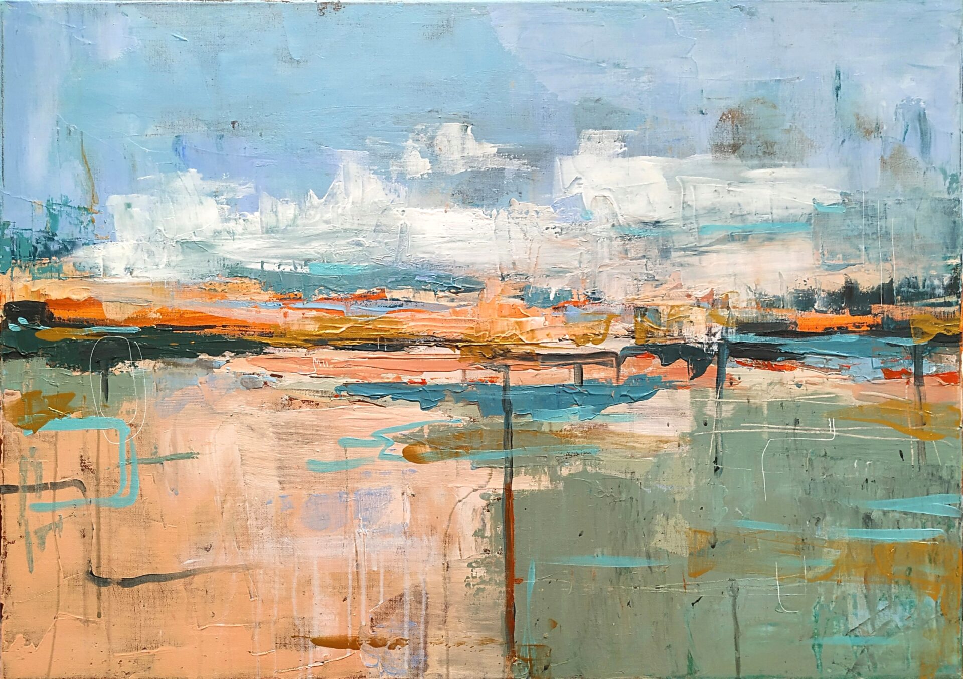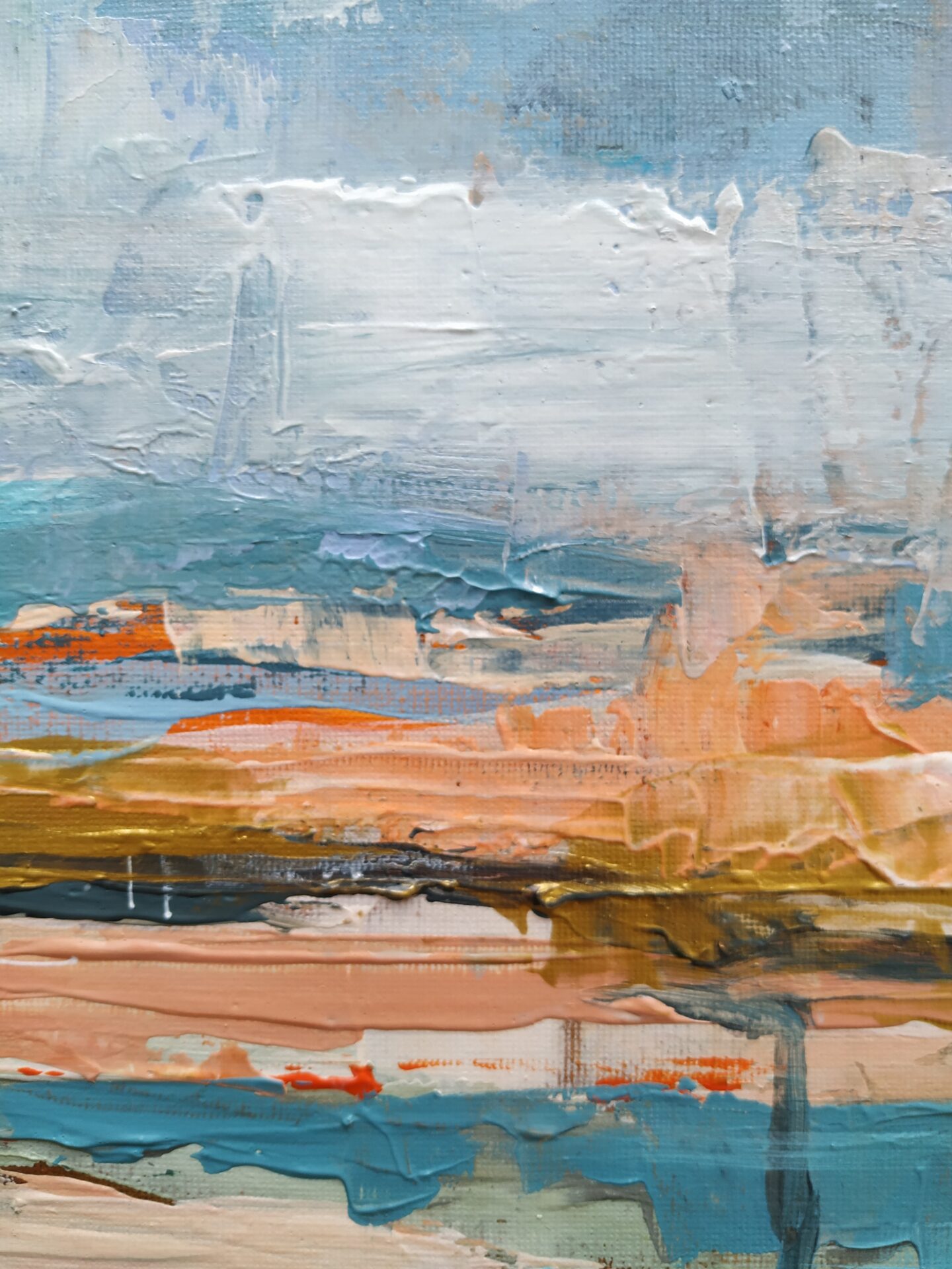 Na pierwszy rzut oka obraz wydaje się chaotyczny, ale przy bliższym przyjrzeniu się można dostrzec subtelne struktury i detale, które nadają obrazowi harmonię. Jest to nie tylko abstrakcyjna reprezentacja odpływu, ale także zaproszenie do zanurzenia się w emocjach i wrażeniach, które towarzyszą temu zjawisku.