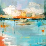 Niewielki obraz akrylowy na płótnie, w ciepłych, nasyconych kolorach.