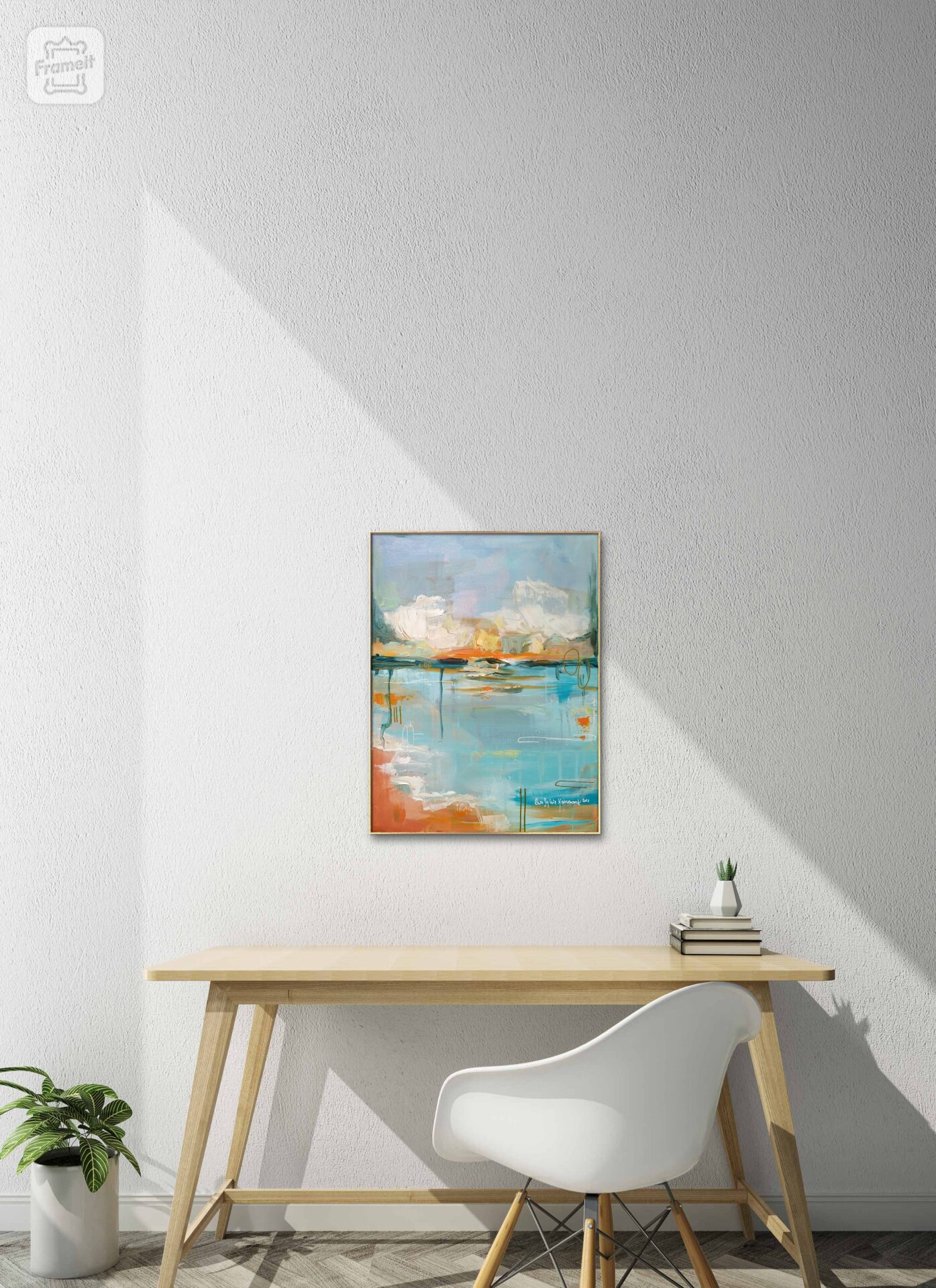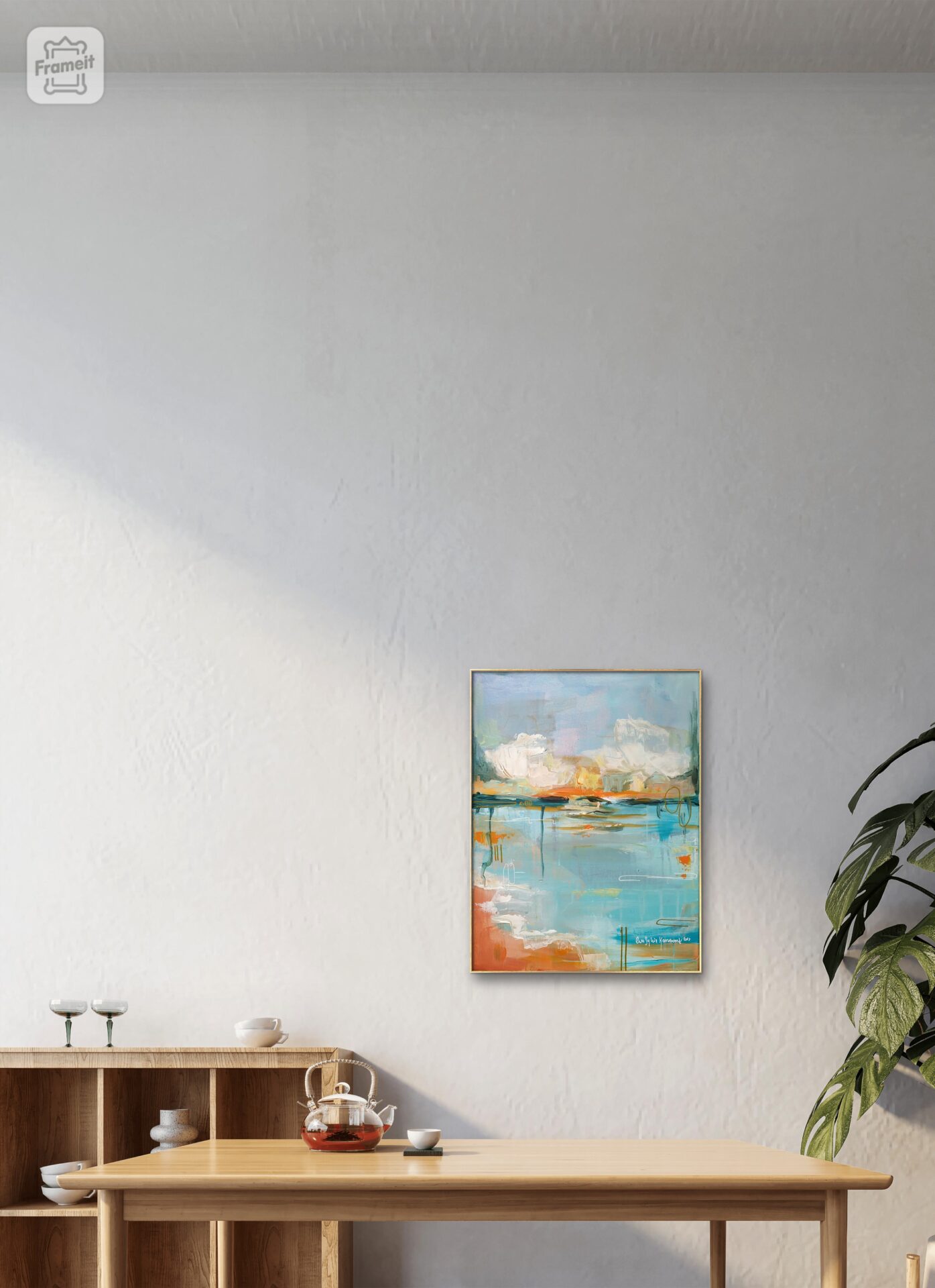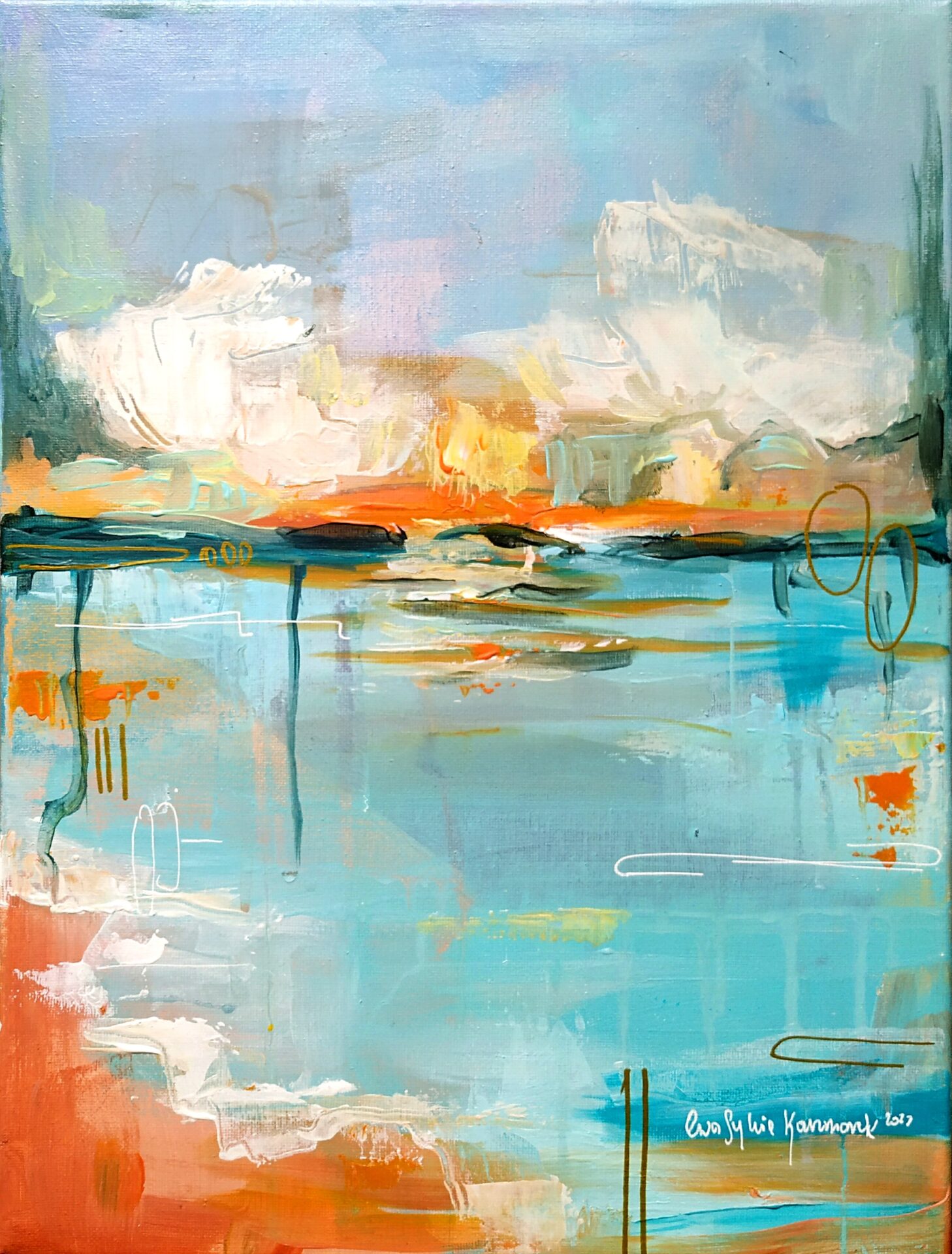 Niewielki obraz akrylowy na płótnie, w ciepłych, nasyconych kolorach.