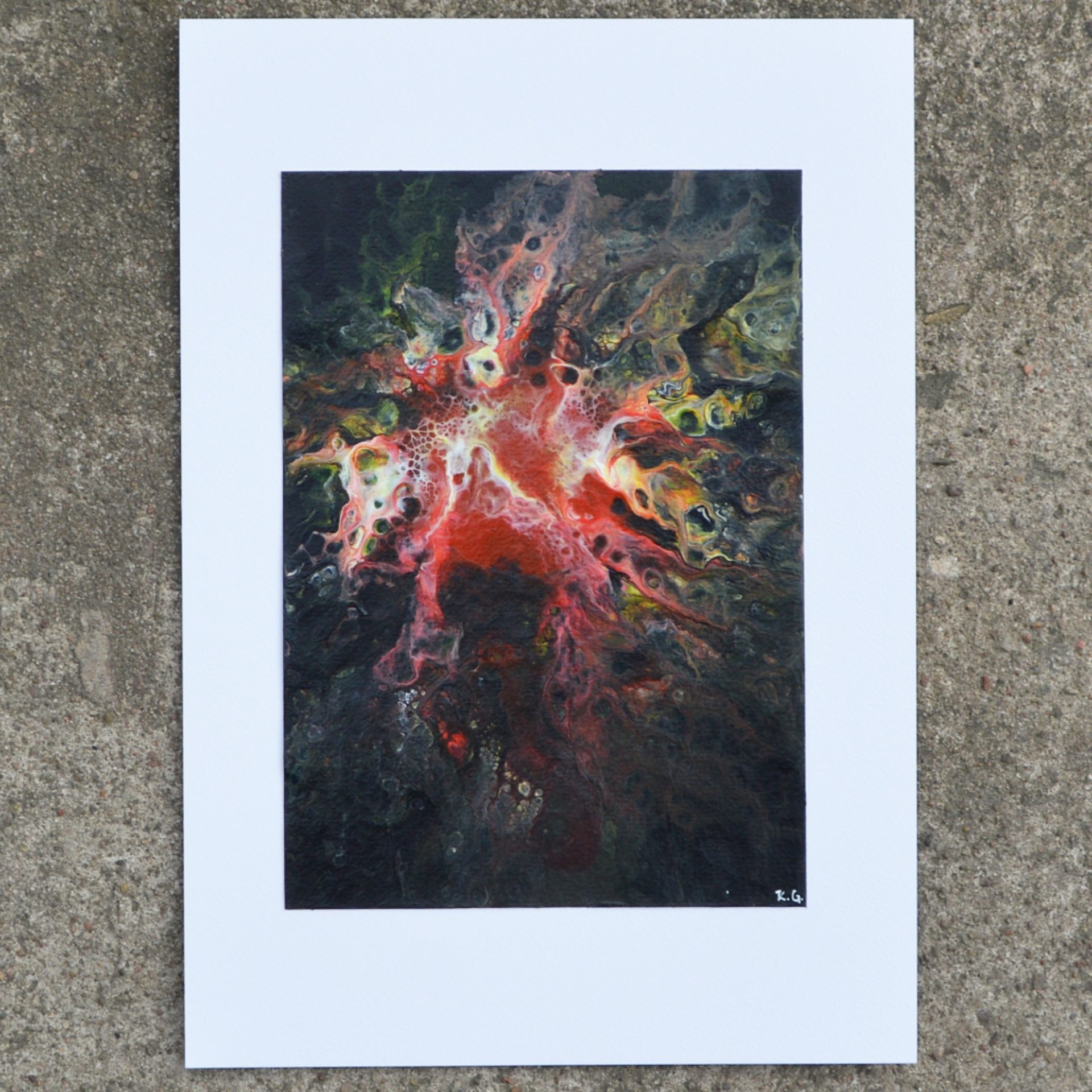 Obraz wykonany farbami akrylowymi na specjalnym papierze przeznaczonym do farb wodnych o gramaturze 300gsm.