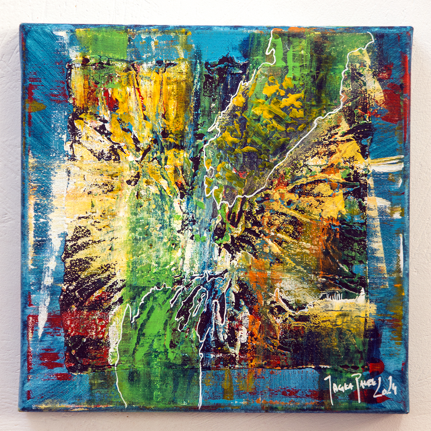Obraz na płótnie włoskim 322g/m2 krosno produkcji polskiej ,farby akrylowe Renesans i Winsor & Newton.Praca autorska AFRP Jagła Paweł.Całość werniksowana i sygnowana przez autora.Wym.30 x 30 cm Praca na krośnie 3D nie wymaga oprawy.
