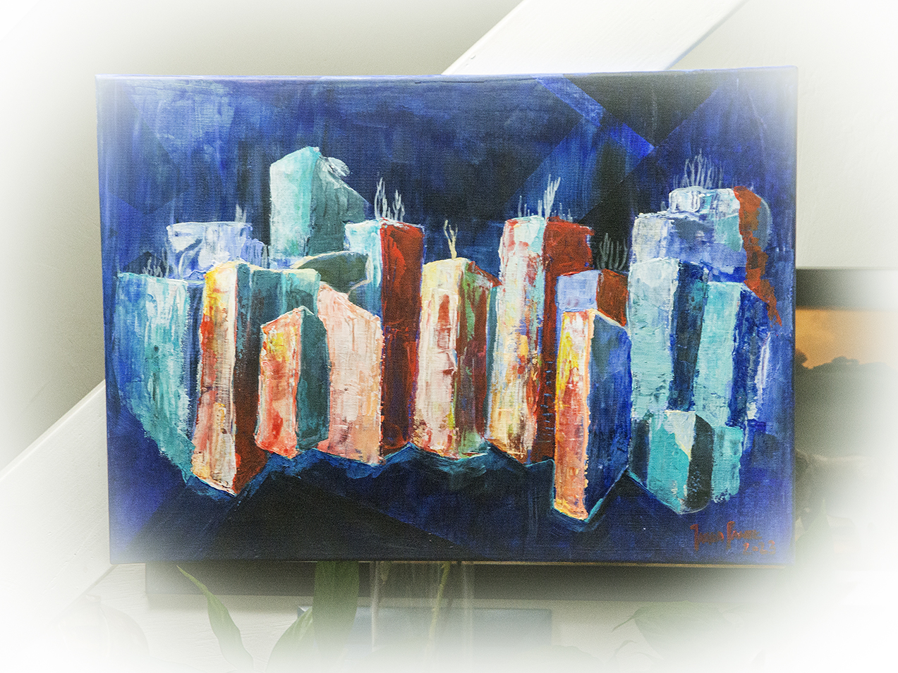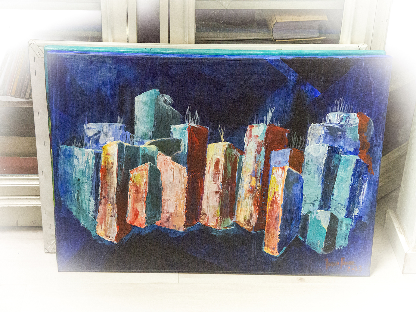Obraz „Blokowisko” namalowany farbami akrylowymi pokryty werniksem…Praca autorska 2023r wym: 70 cm x 50 cmAutor: AFRP P.Jagła Praca nie potrzebuje obramowania…