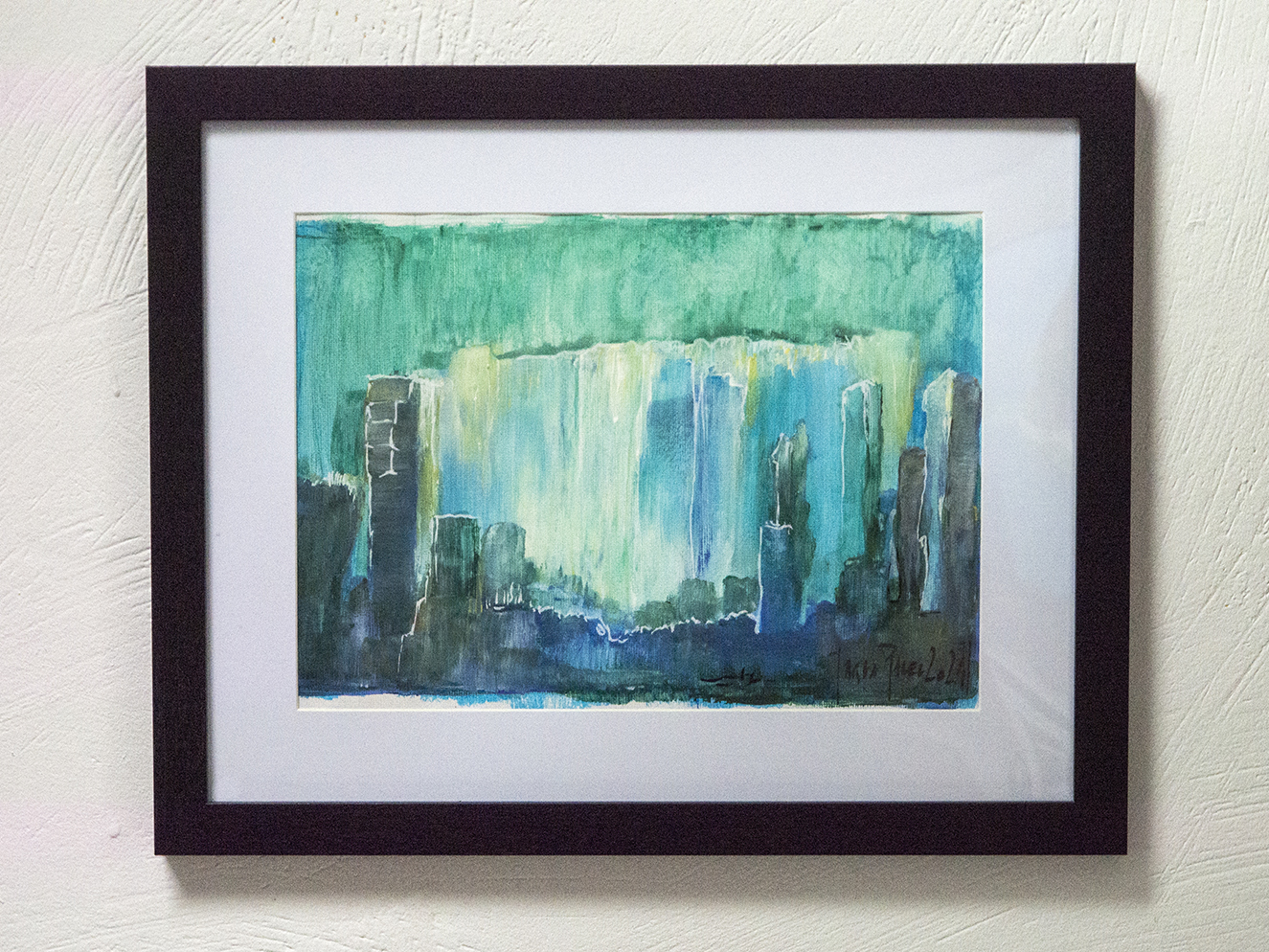 Praca autorska AFRP P.Jagła na płótnie z arkusza A4 granulacja 280g farby akrylowe .Praca oprawiona w ramce wymiar: 36,5×29,5 cmPraca sygnowana przez autora.