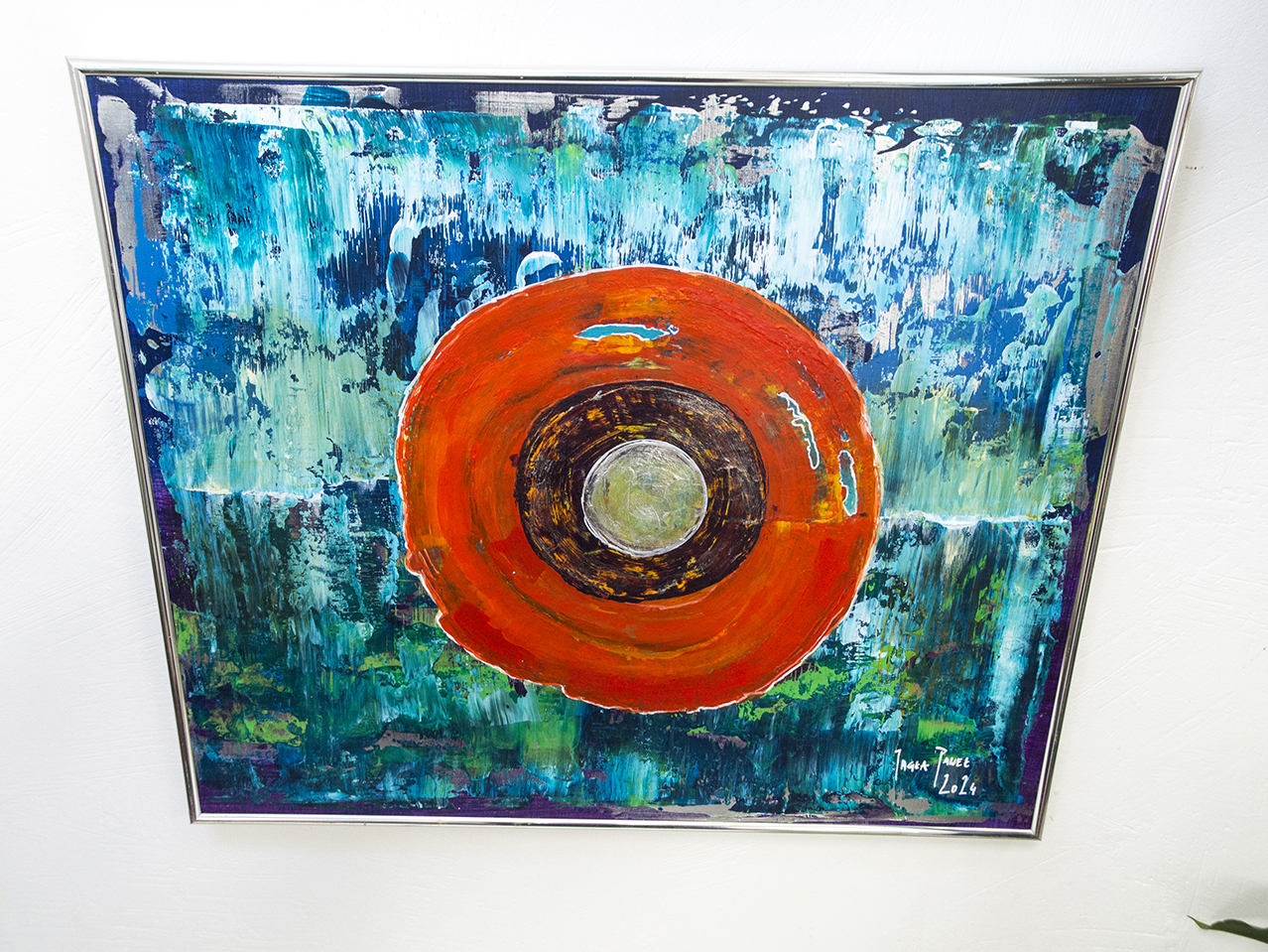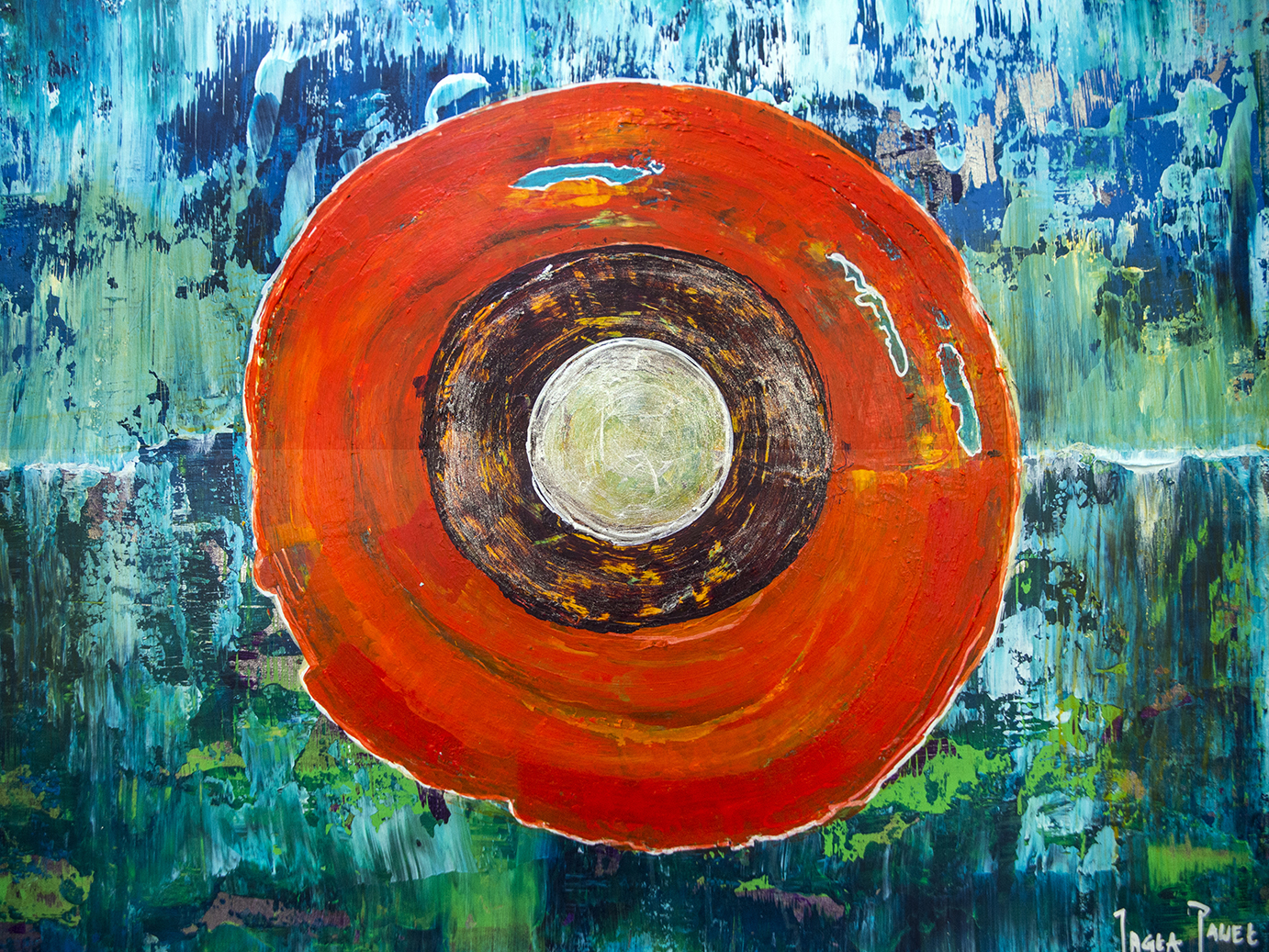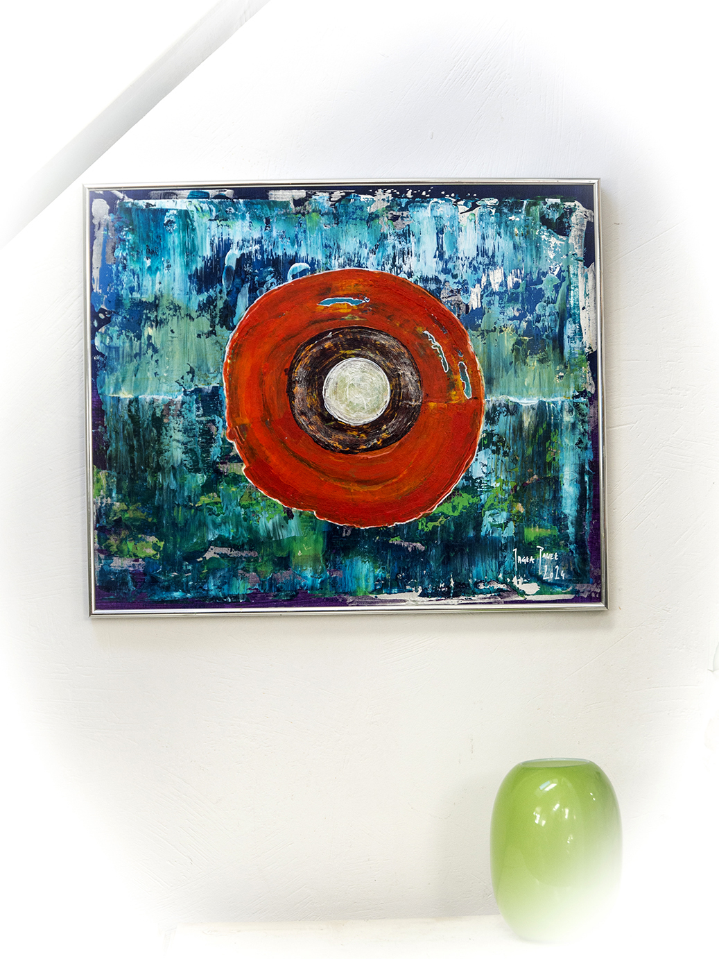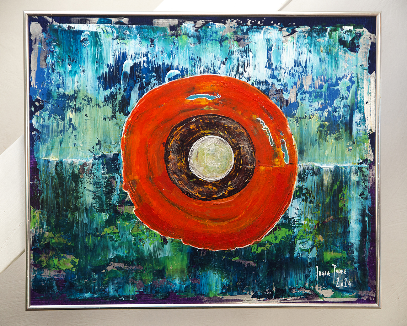 Obraz na płycie pilśniowej 60 x 50 cm ,farby akrylowe Renesans i Winsor & Newton z elementami barwy srebrnej…Praca autorska AFRP Jagła Paweł.Całość werniksowana i sygnowana przez autora.Wym.60 x 50 cm. Praca oprawiona w aluminiową srebrno satynową ramkę.
