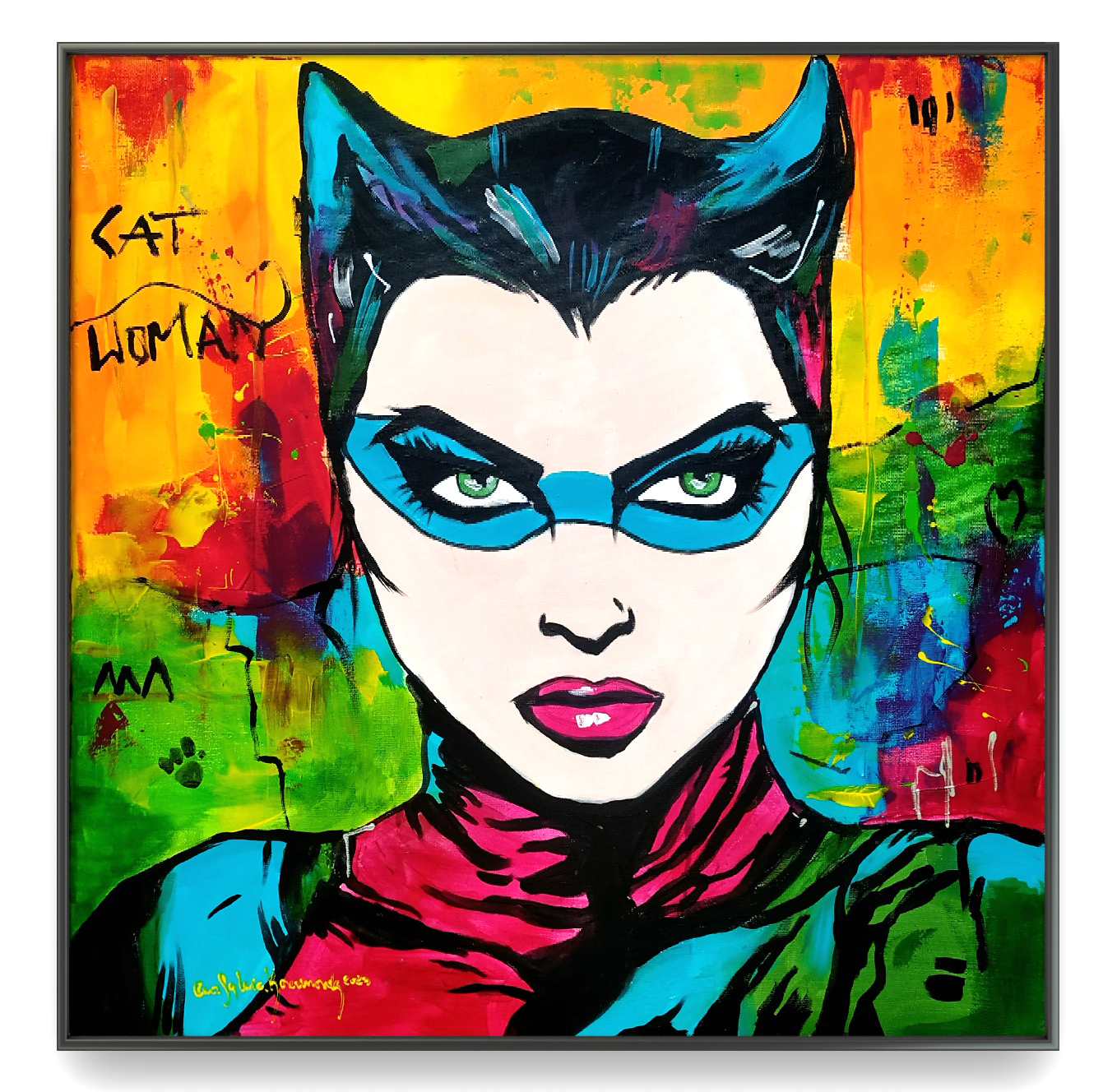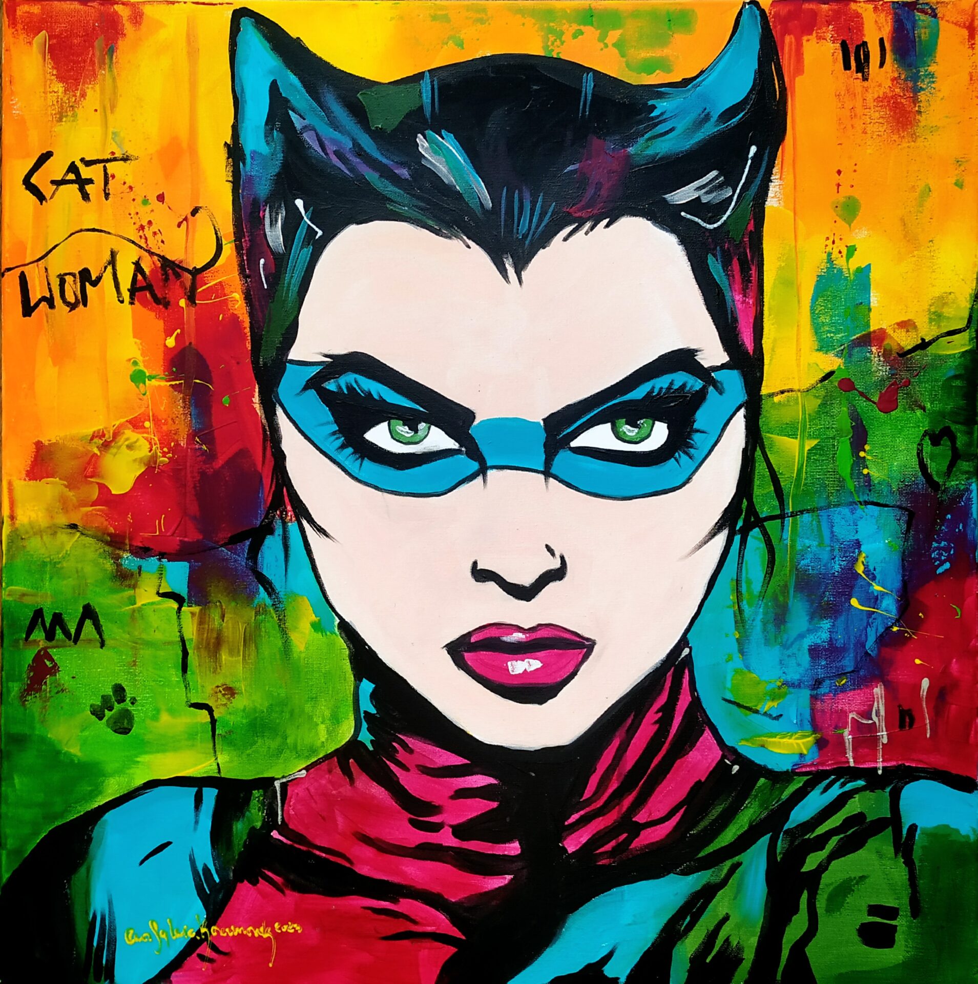 Obraz akrylowy na płótnie w stylu Pop Art przedstawiający postać z komiksów DC – Cat Woman.