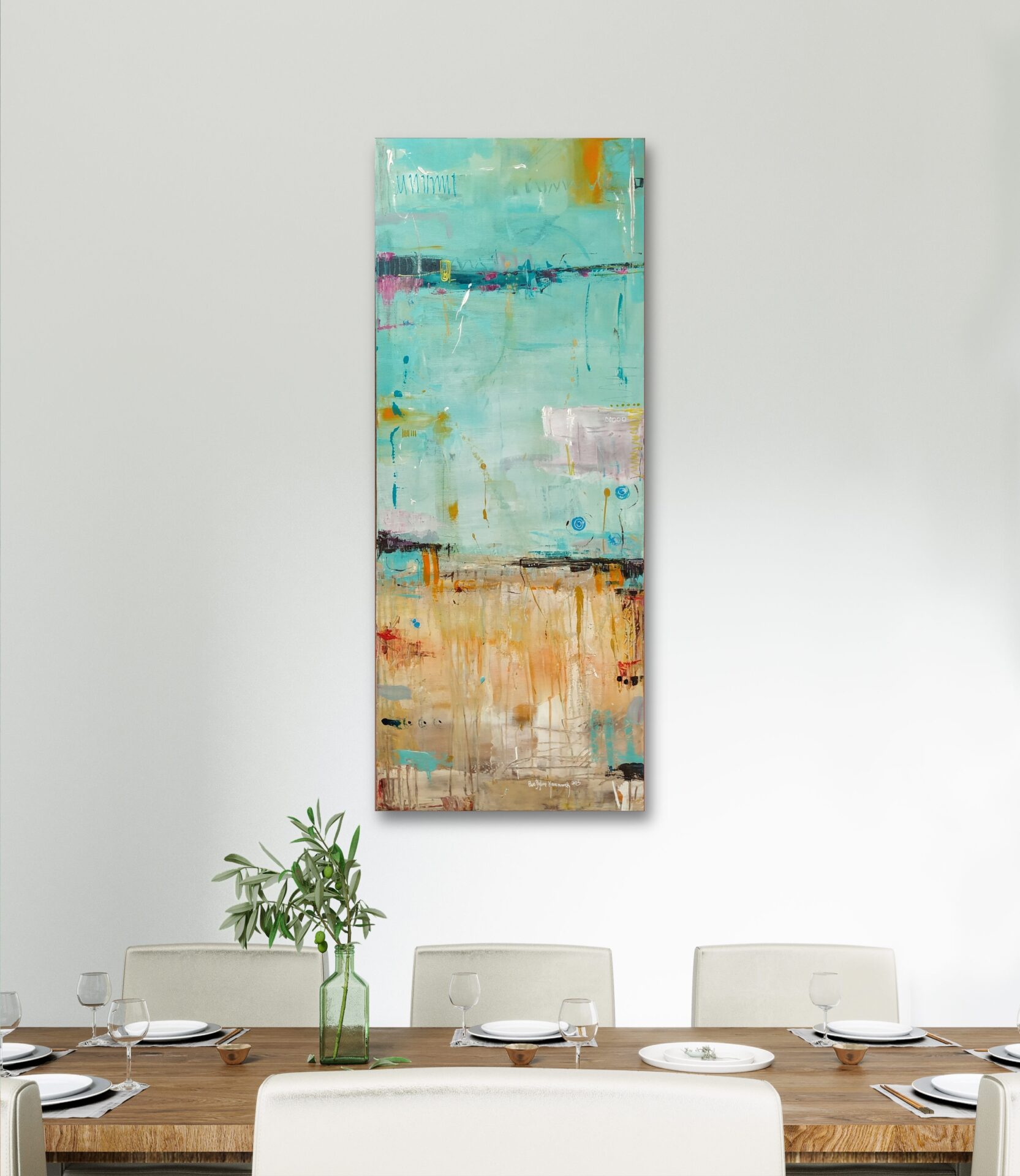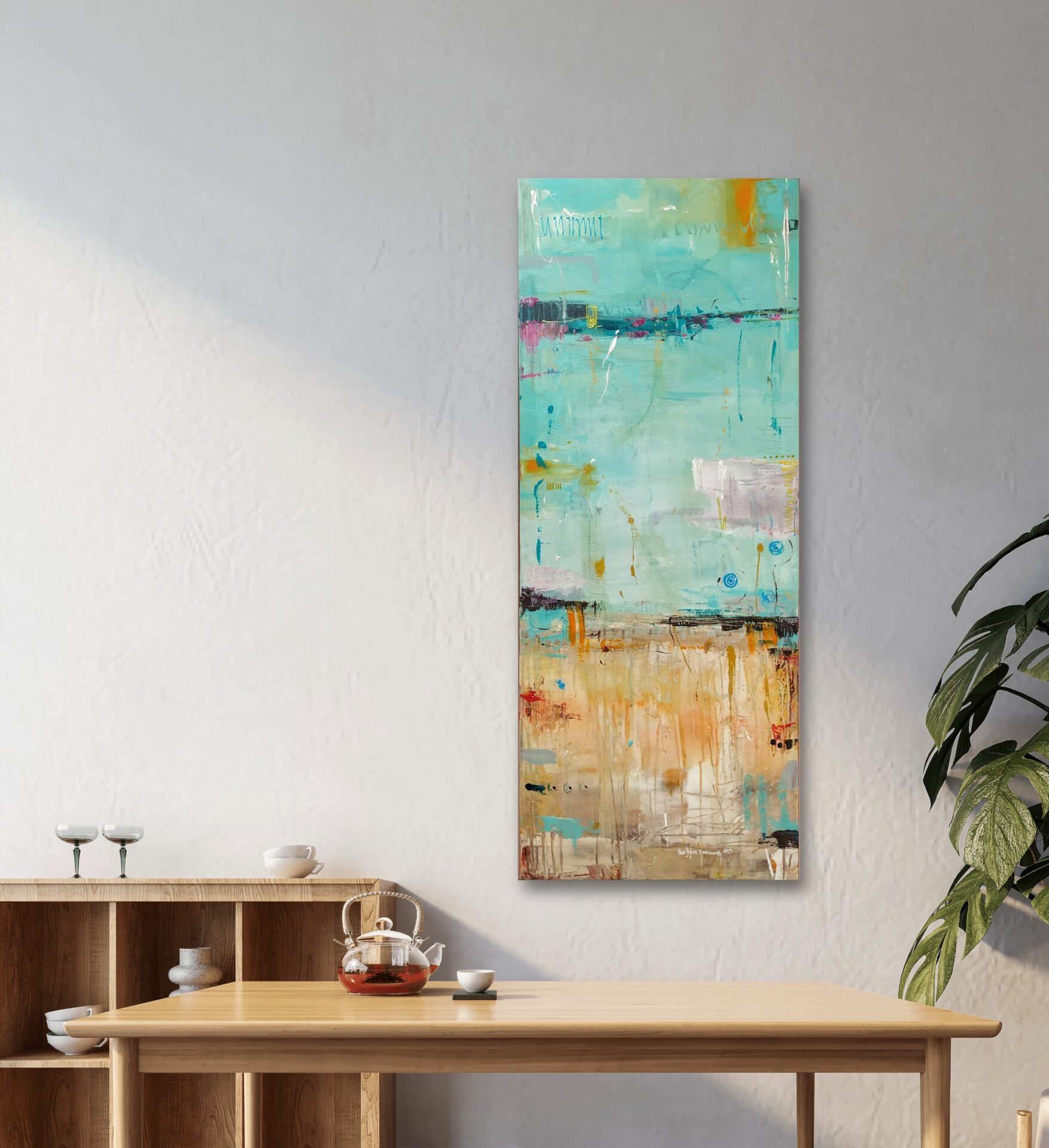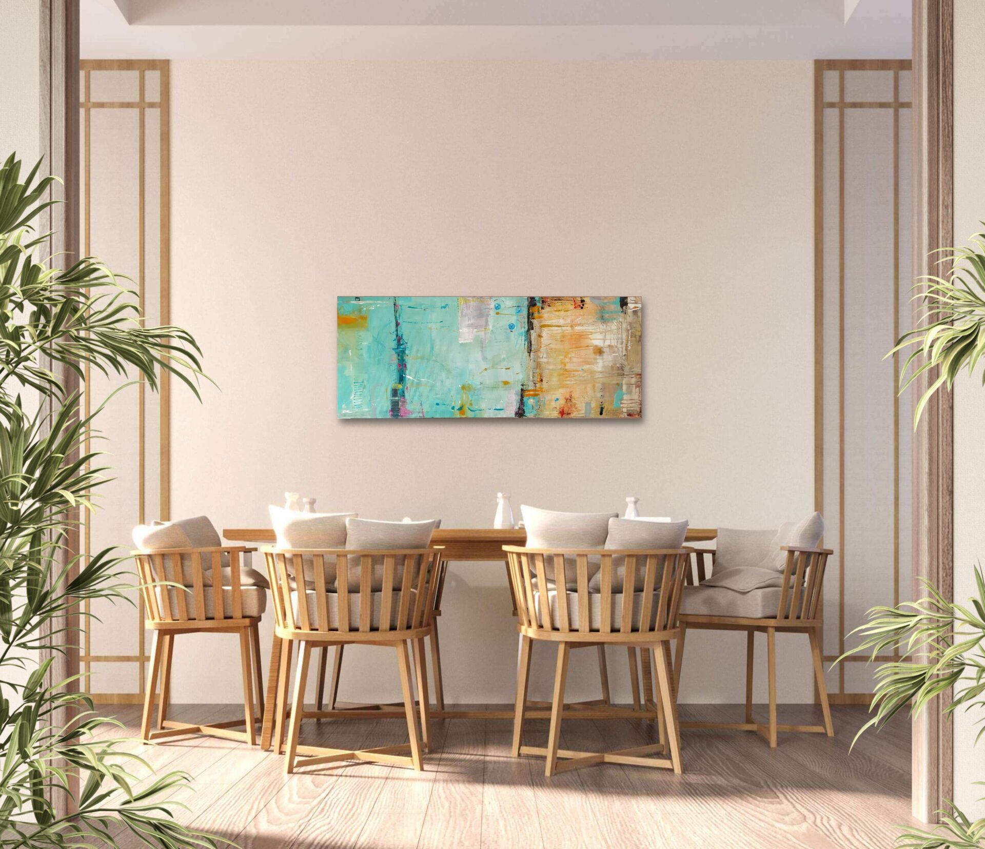 Poprzez łagodne kolory i przejścia obraz tworzy atmosferę letniego wypoczynku i relaksu. Spokojna morska toń łączy się z piaskiem i wprowadza spokój i wyciszenie, pozwalając zapomnieć o codziennych troskach.