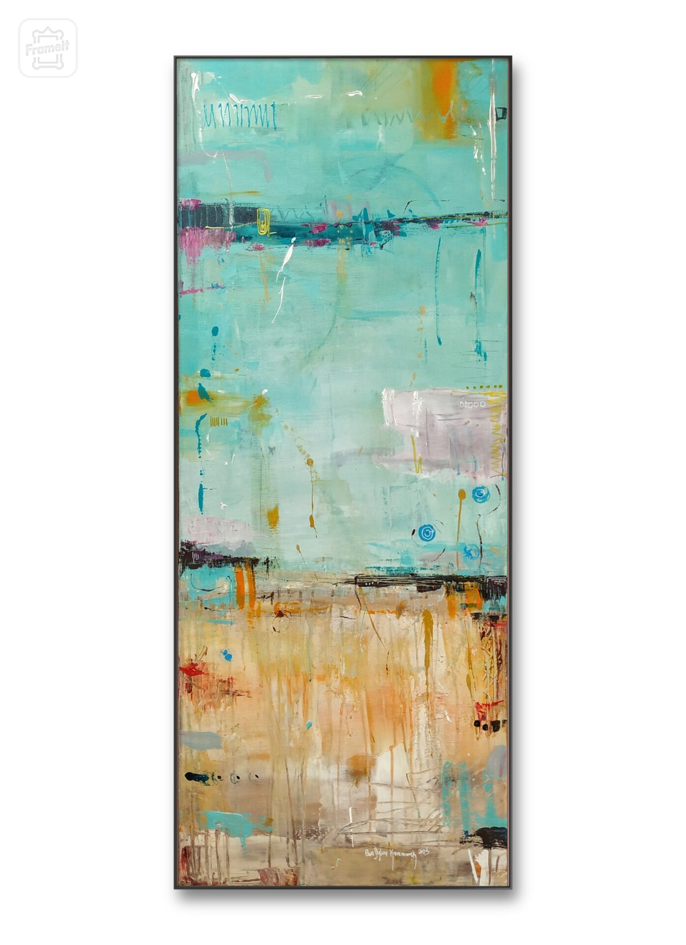 Każdy szczegół tego abstrakcyjnego obrazu skrywa w sobie magię Da Nang – od spokojnych odcieni wód po delikatną linię brzegu. To obraz, który prowokuje wyobraźnię i zachęca do refleksji.