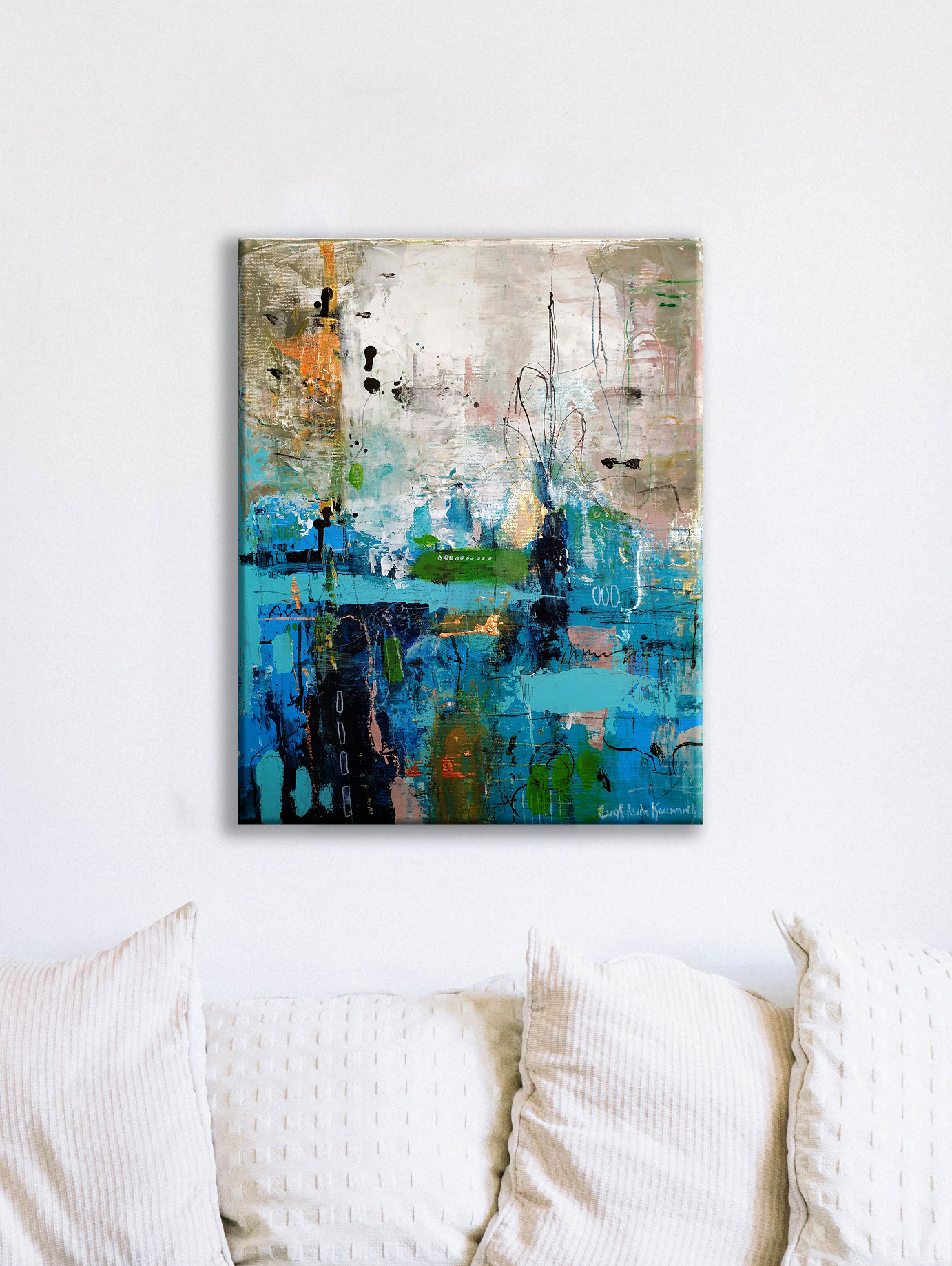 Poprzez hipnotyzujące przeplatanie odcieni i barw, artysta zaprasza nas do krainy spokoju i głębi. Różne odcienie niebieskiego tworzą poczucie bezgraniczności, jak patrzenie w nieskończoną przestrzeń nieba czy morza. Abstrakcyjna natura obrazu zachęca do interpretacji, pozwalając każdemu obserwatorowi znaleźć własne emocjonalne połączenie.