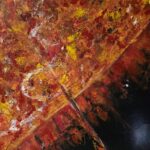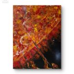 Obraz jest prawdziwą eksplozją kolorów. Dominują tu odcienie ciepłych barw: głównie czerwienie, oranże i żółcie, które przepływają przez płótno niczym jesienny pejzaż. Kompozycja jest dynamiczna, pełna ruchu, z jasnymi plamami wybuchającymi na tle ciemniejszych tonów. Artysta z pewnością postawił na abstrakcyjny styl, używając techniki impasto. Dzięki temu farba jest grubo nałożona, a tekstura niemal wypływa z obrazu.