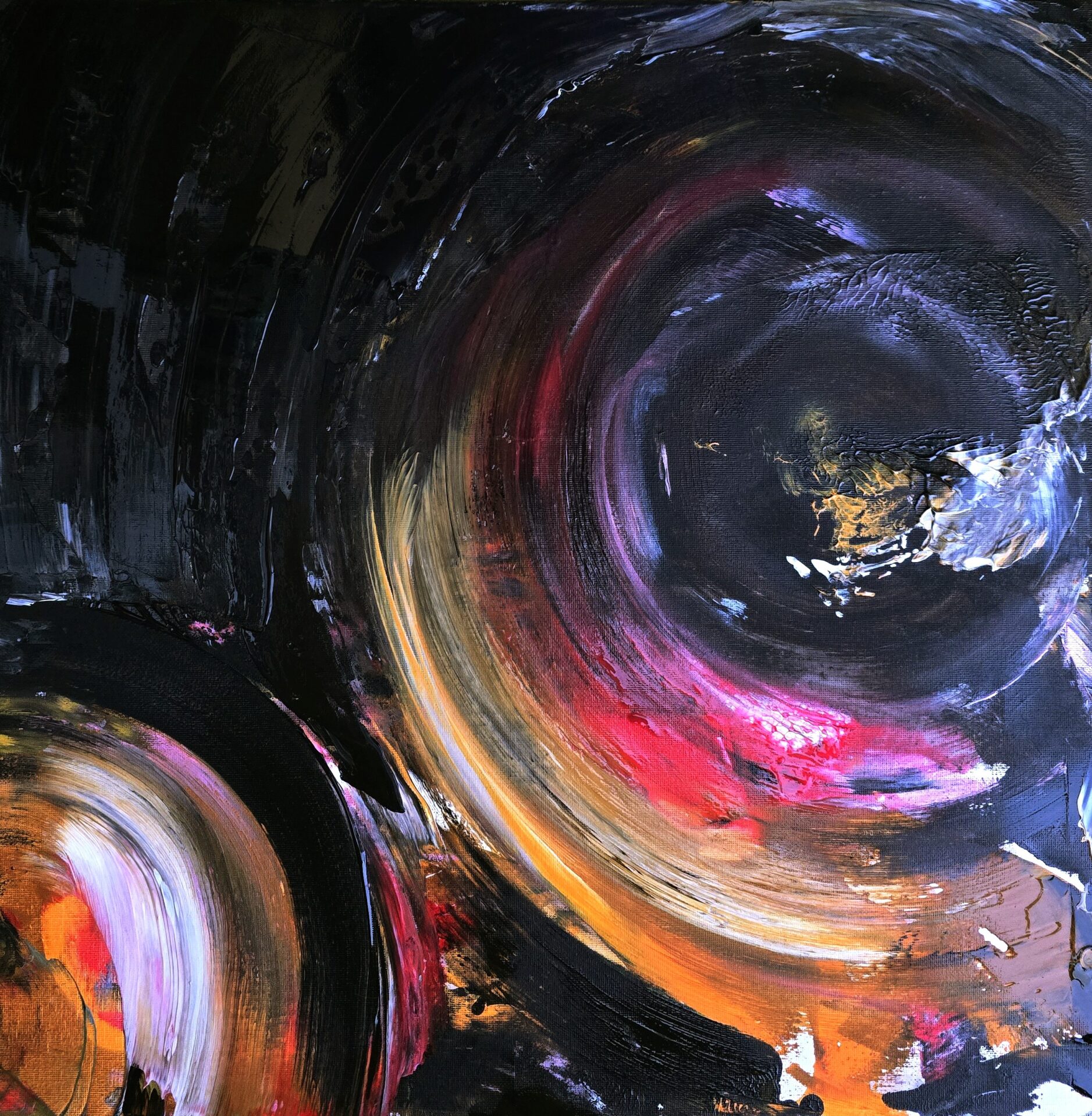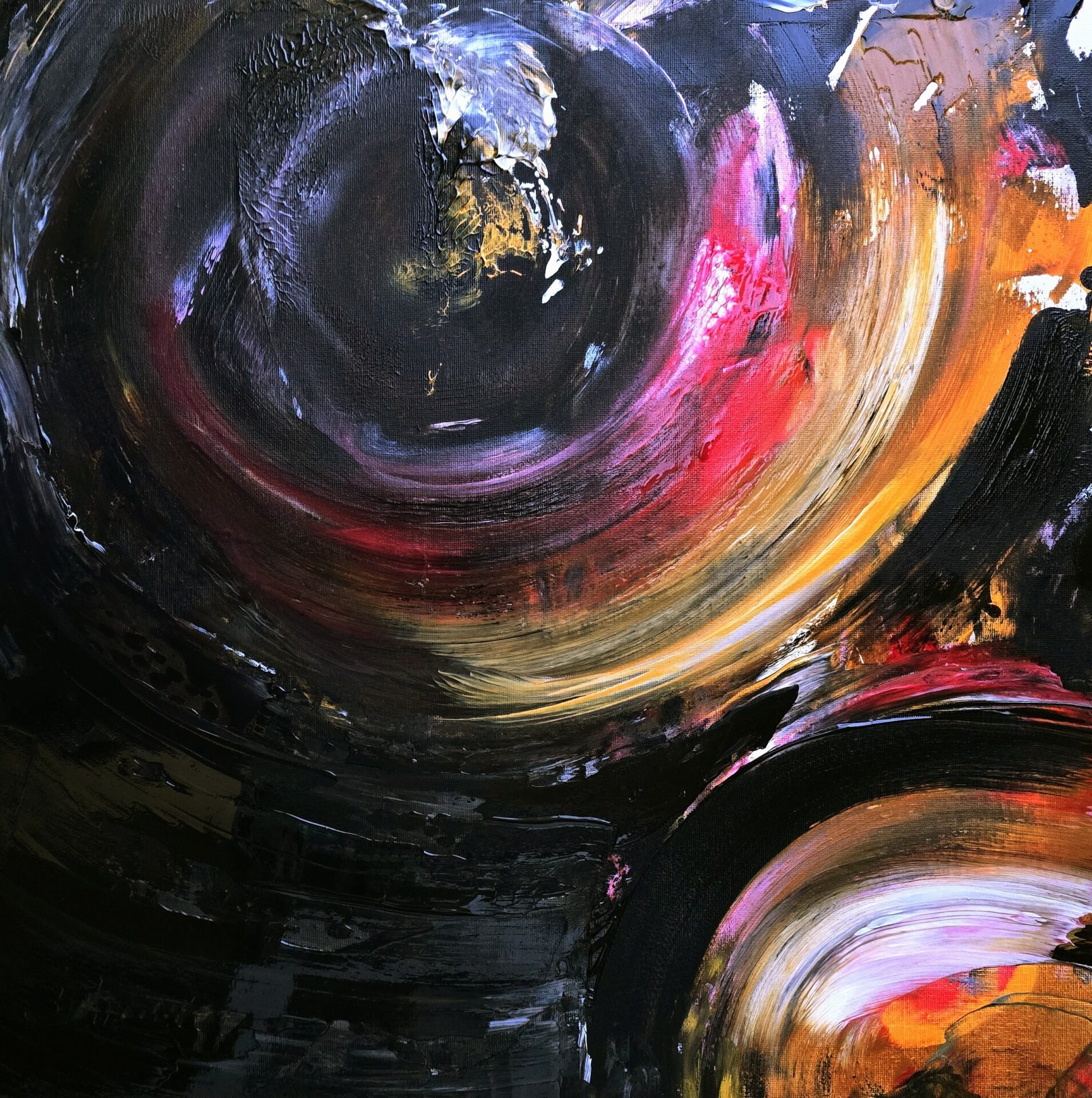 Abstrakcja, obraz akrylowy, obraz abstrakcyjny, czarny, biały obraz, Kosmos, wszechświat, księżyc