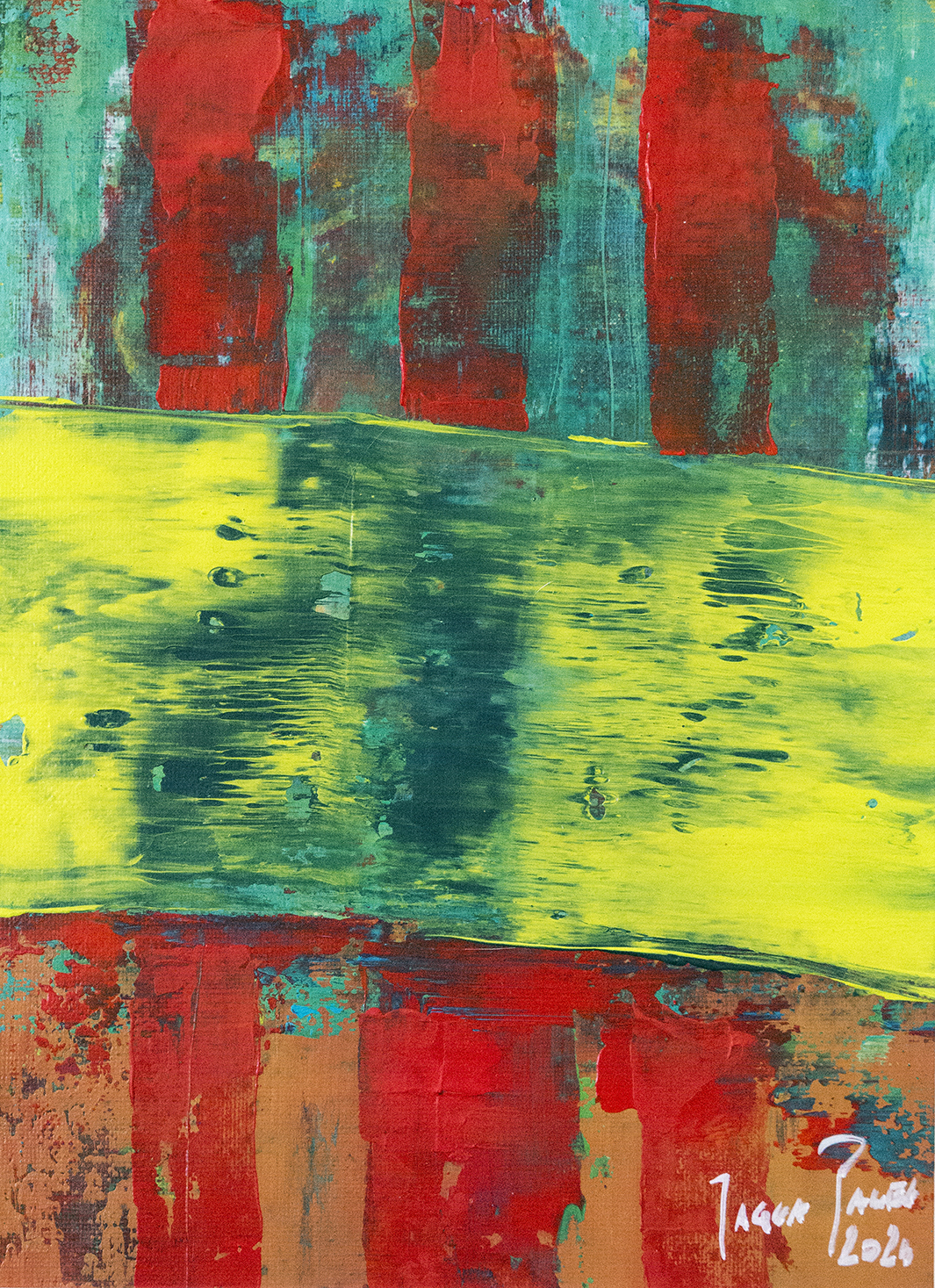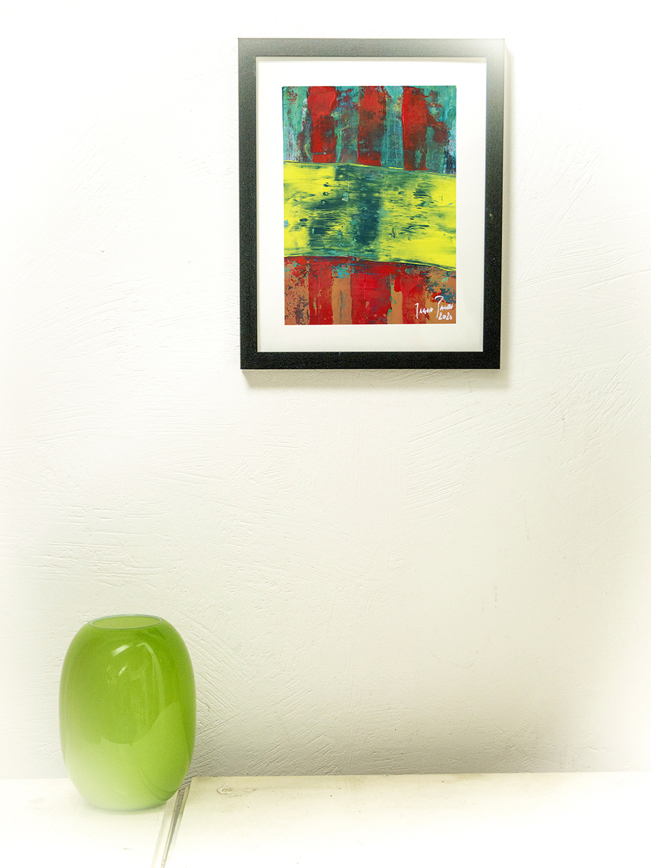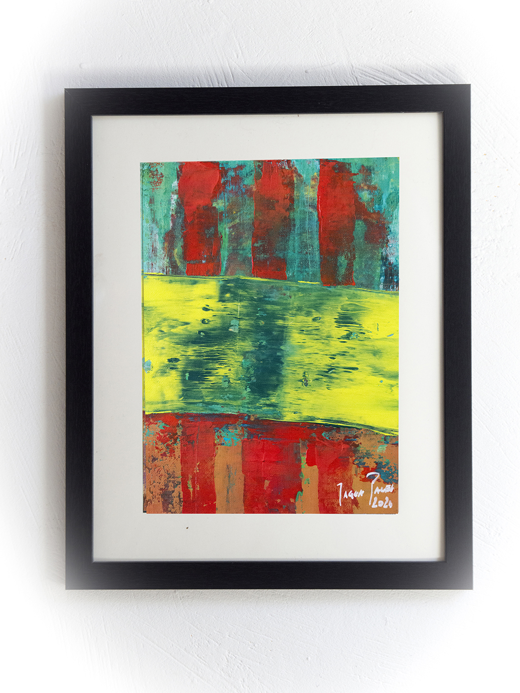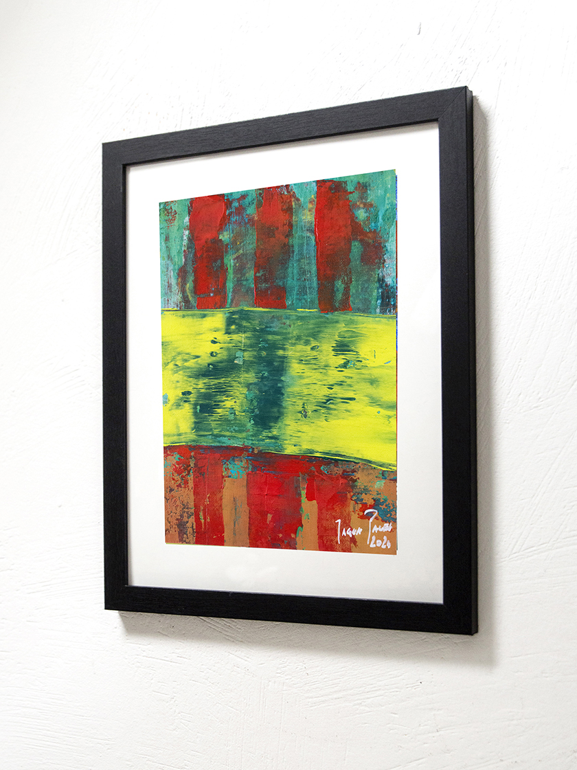 Praca wykonana na arkuszu płótna A4 gramatura 280gr. farbami akrylowymi „Renesans” ,” Amsterdam”-werniksowanaPraca oprawiona autorska AFRP Paweł Jagła sygnowana z przodu i tyłu.Wymiar Ramki: 29,5 x 36,5 cm