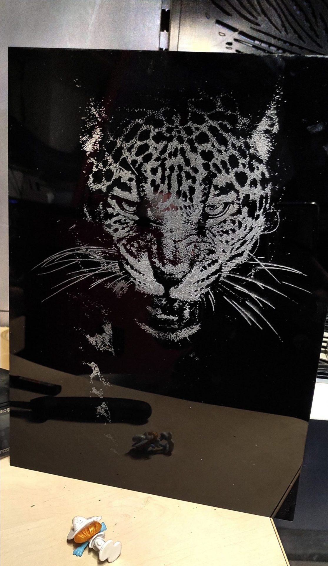 Obraz grawerowany w szkle akrylowym Jest rzadko spotykana technika do tworzenia obrazów przez co każdy obraz jest wyjątkowy. Czarne szkło akrylowe wygląda bardzo elegancko i nie tłucze się więc na pewno idealnie nada się do twojego salonu!
