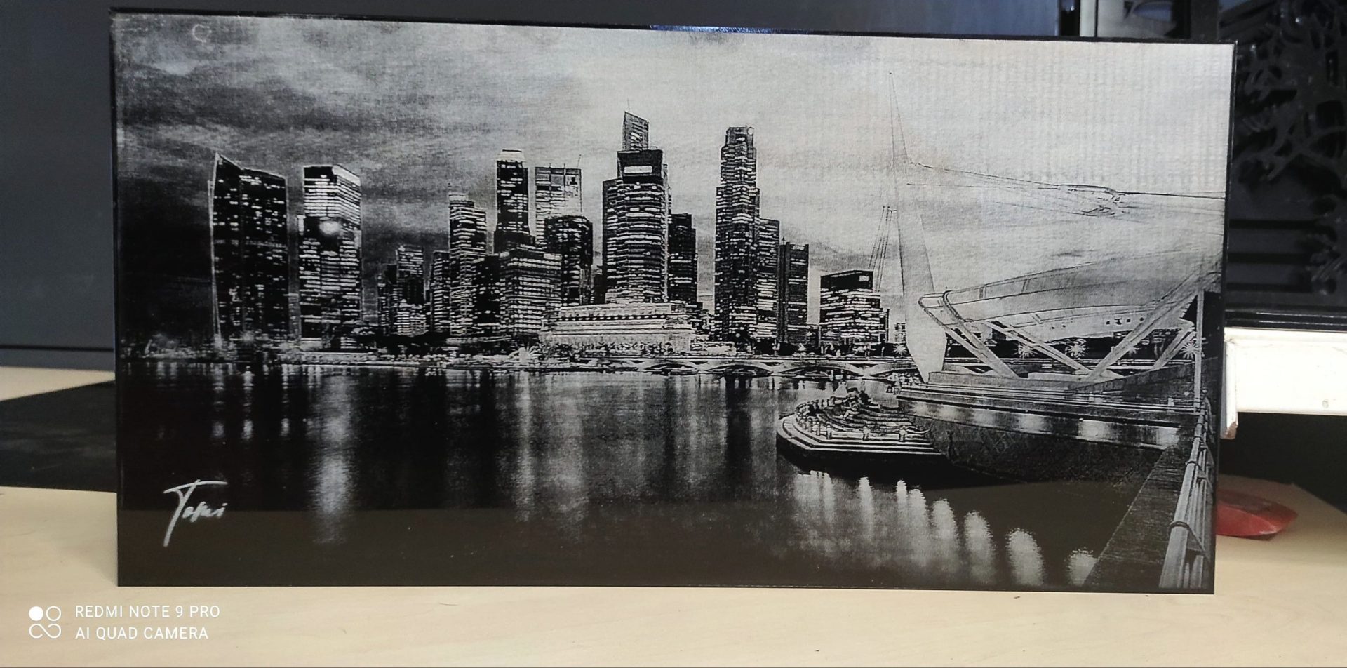 Obraz grawerowany w szkle akrylowym Jest to mało spotykana technika do tworzenia obrazów przez co każdy obraz jest wyjątkowy. Czarne szkło akrylowe wygląda bardzo elegancko i nie tłucze się więc na pewno idealnie nada się do twojego salonu!