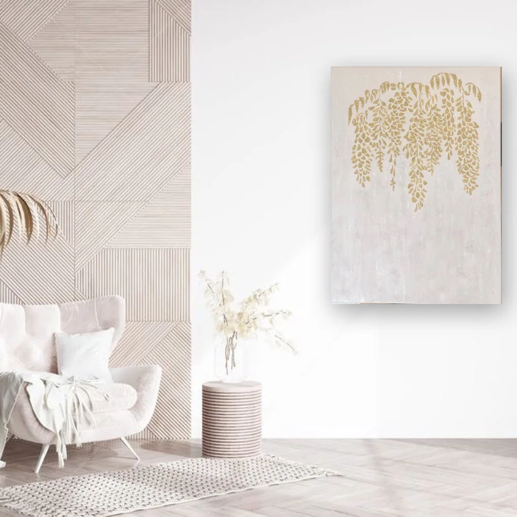 Оригінальна акрилова картина ручного розпису на полотні. Відмітний золотистий колір привертає увагу і погляд негрубою фактурою фарби. Картини з квітами підходять до будь-якого інтер’єру. Чудова ідея для подарунка. Під фоном картини намальовані боки колір,не потребує рами.Готовий до розвішування.Акрилова картина прикрашена золотими пластівцями з додаванням декораційного піску.Оригінальна картина та підпис художника.Сердечно рекомендую.