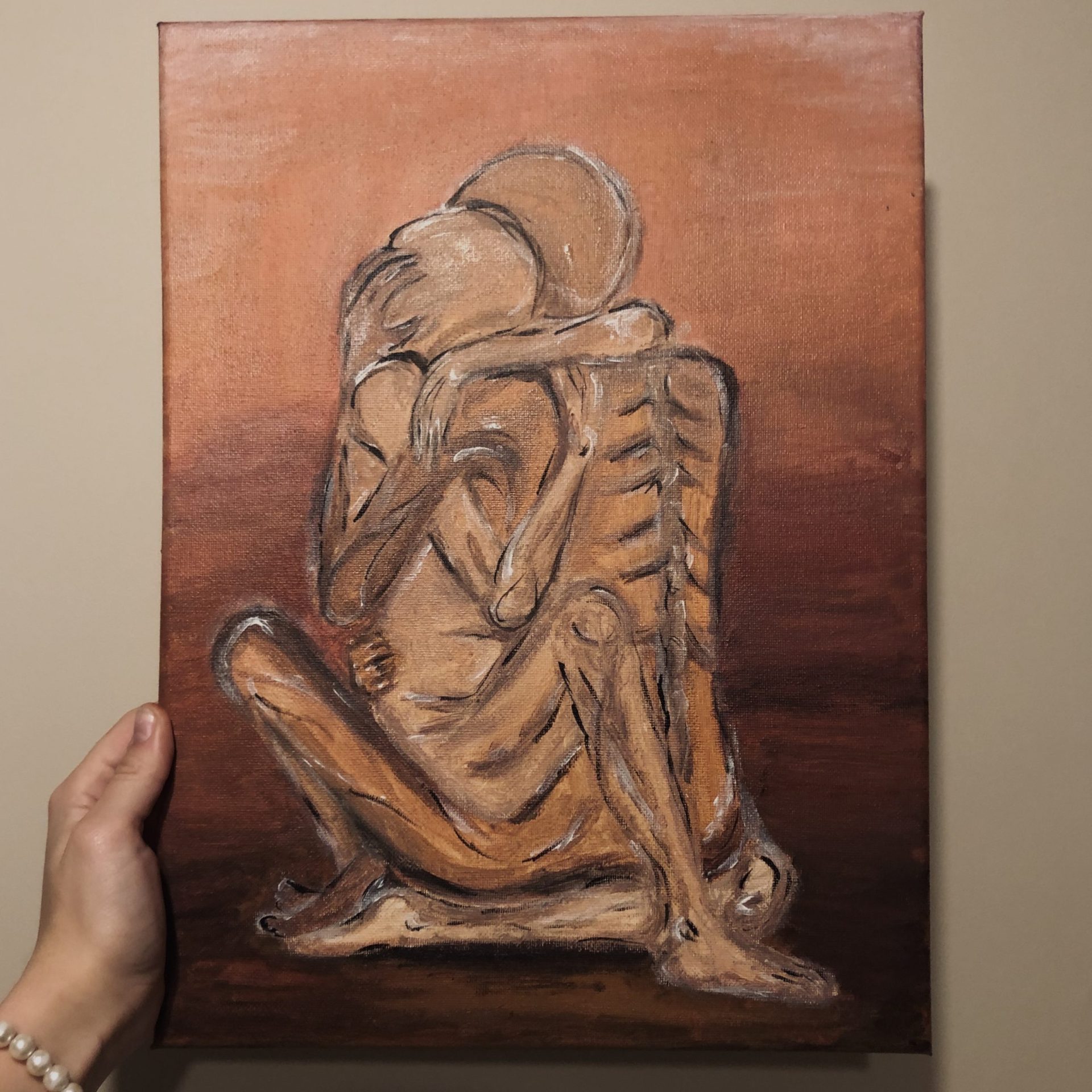 Praca wykonana na podstawie obrazu Beksińskiego, który według mnie był wielkim artysta, który miał ogromny talent. Od Kiedy pamietam próbowałam w jakimś małym stopniu dorównać jego pracom i w koncu udało mi się osiągnąć mój mały cel.